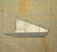 Now you have to cover up those unsightly gaps in wings with a little plastic card. I made a pattern so all the panels would look the same, and used a leather punch to add rivets to the plates so that they matched the existing stricture.