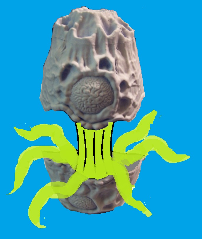 Manchu wrote:From that button, I'd say the smooth end crashes in and then troops exload from the "bottom," which is ringed by writhing tentacles. Janthkin, may I suggest modeling these into terrain, i.e., half buried with waving tentacles?