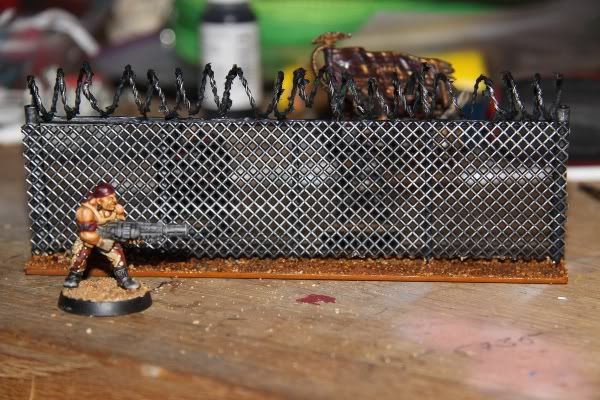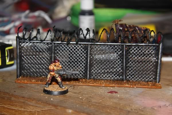 Playin' around with some stuff makin' terrain. Put together a 6in chain link fence; going to build a hand full more of them
