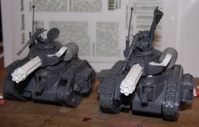 Both are getting stubbers, and were all Heavy Bolter hull/sponson to increase deadly capability against hordes.