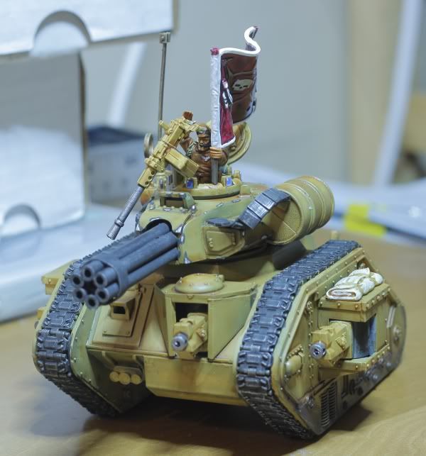 Got to play it at a game against Orks was happy with it, much more so than the damn Vanilla Russes that bit the dirt with out even a single shot from either of them but them's the dice. Still with Pask in this thing its a beast! I just wish it had 36" range on the cannon to match up with the Sponson and hull HB.