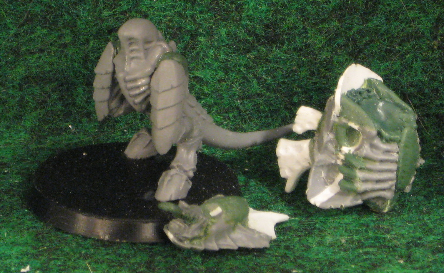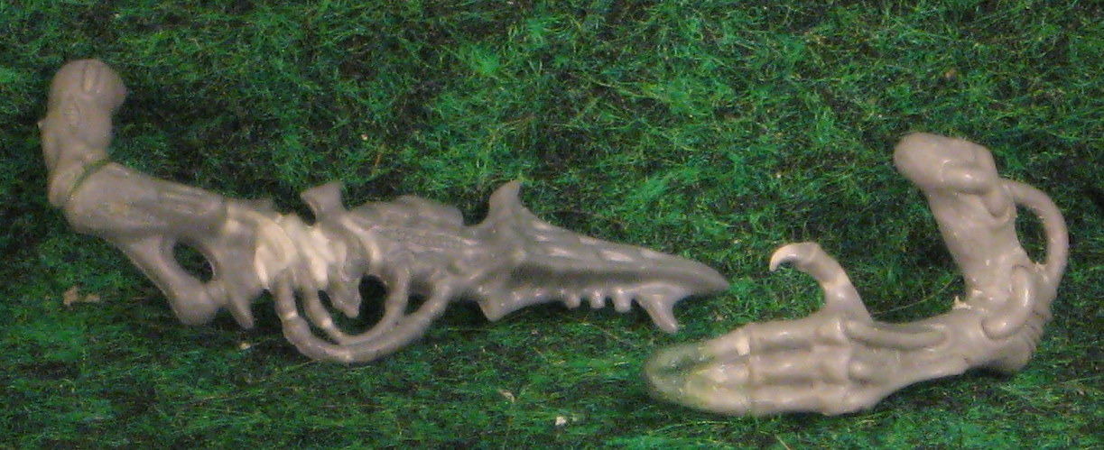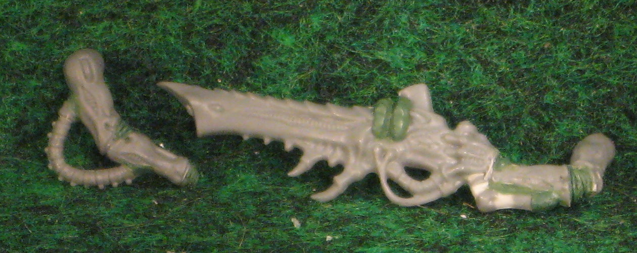 Made up an Alpha Warrior aka Tyranid Prime for use with the new Codex. It's a "biggerized" Tyranid Warrior with some extra details added on and some specially made weapons to suit his stature. The indivigual parts are all made as pictured, but not assembled to allow the buyer to give it their own choice of pose and weapon load out. In addition to what's pictured, you get a set of Scything Talons and Rending Claws from the Warrior box, unmodified.