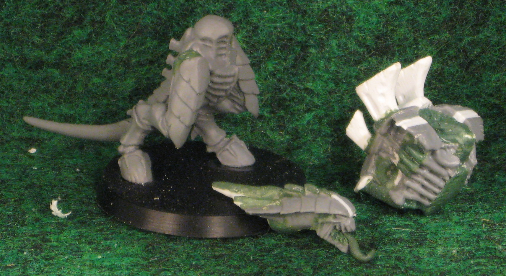 Per request, a quick shot of this guy himself tacked together with my favorite weapon load out (though not particularly posed for good effect) next to a standard sized Warrior.