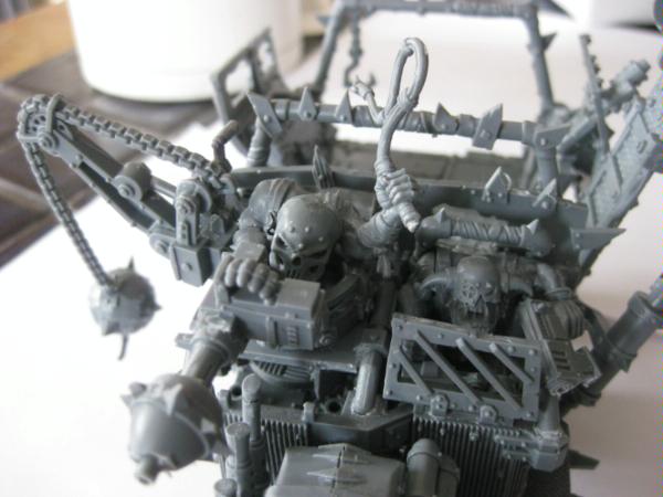 Recent This is my most recent noteable work (well, most of my work does something interesting, but this guy is praticularly impressive). The idea was to create a Nob with a Big Shoota and Power Klaw, just in case I ever wanted one in a Shoota Boy Squad. I didn;t intend to use all of these chaos parts, but they all semmed to work. the bottom of that mask will be painted too look like it has been charred by the heat from the gun. I may also crack it a bit. In the meantime it scares the bajeezus out of me.