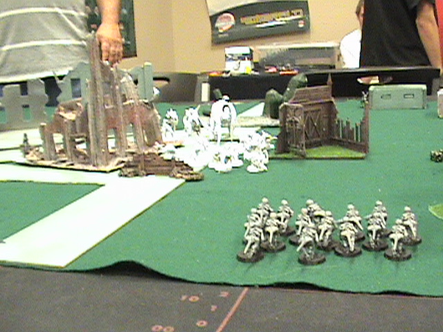 turn one, . His tervagons spawns 20 gants total, they move up and fire combineing to take my spawned gant squad down to 12.