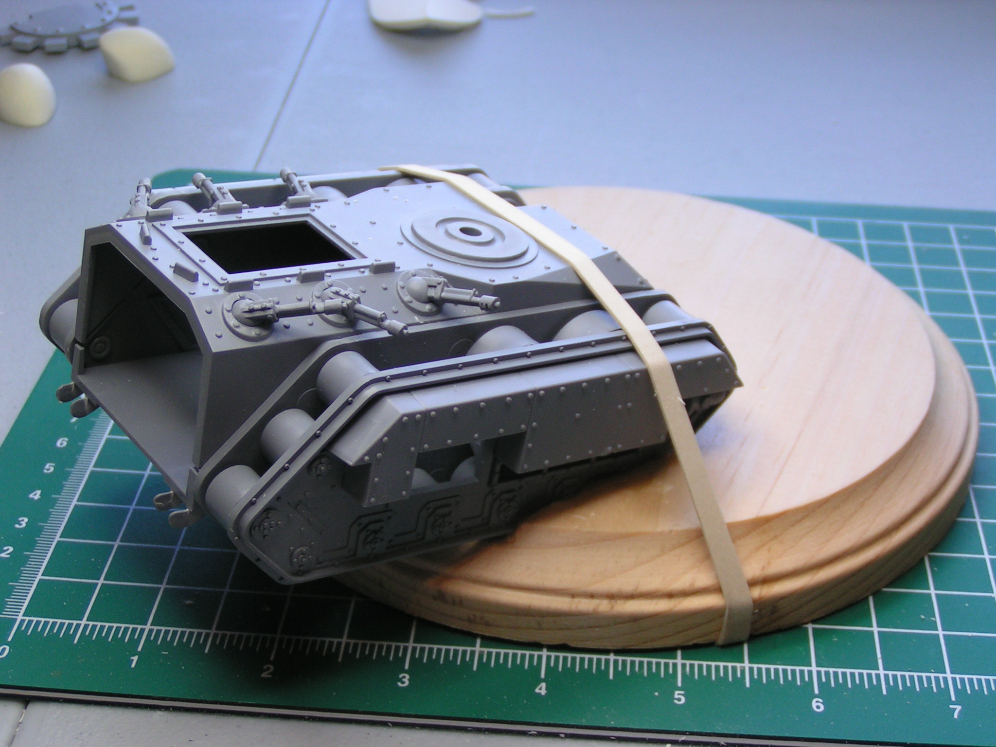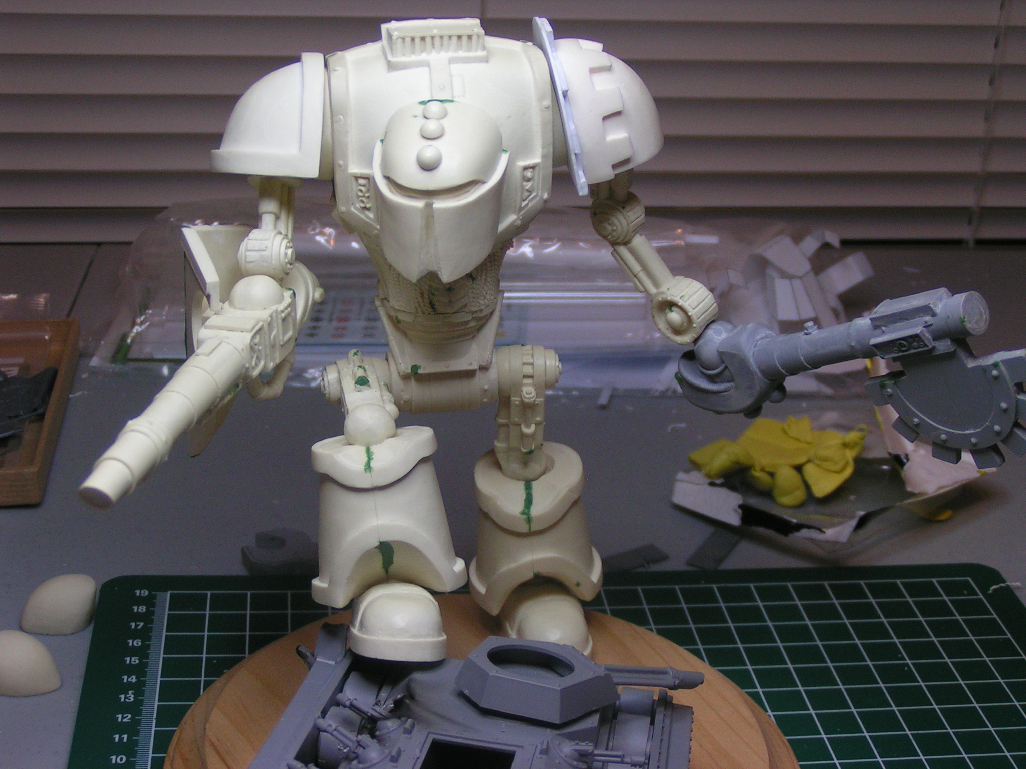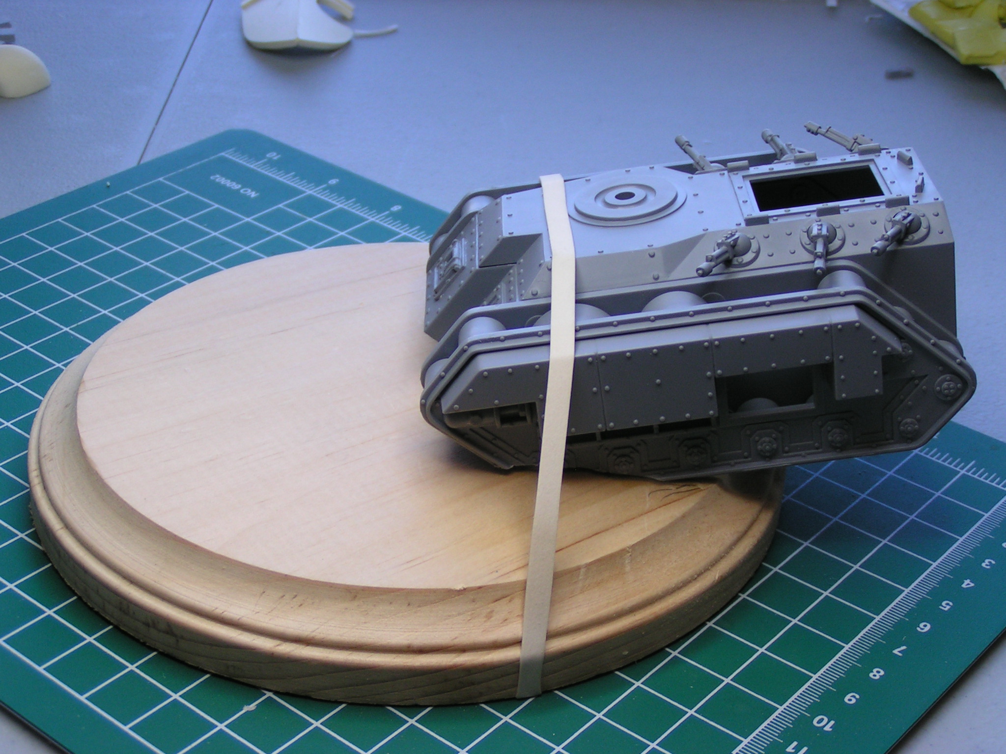 Next update. This is the base I am working on for the knight. The last three pics are of the battle damage the knight has inflicted on the traitor Chimera with his battle cannon.