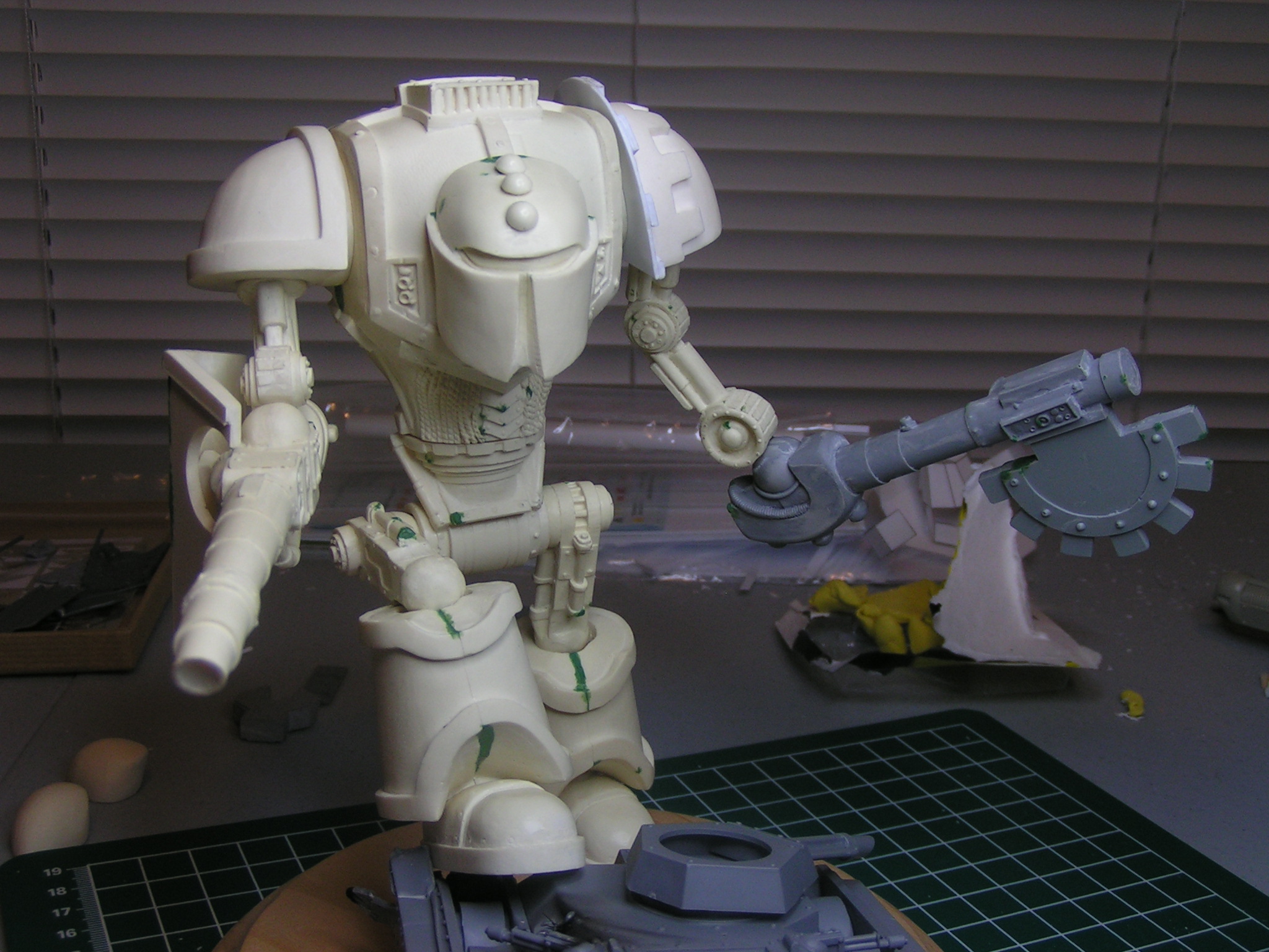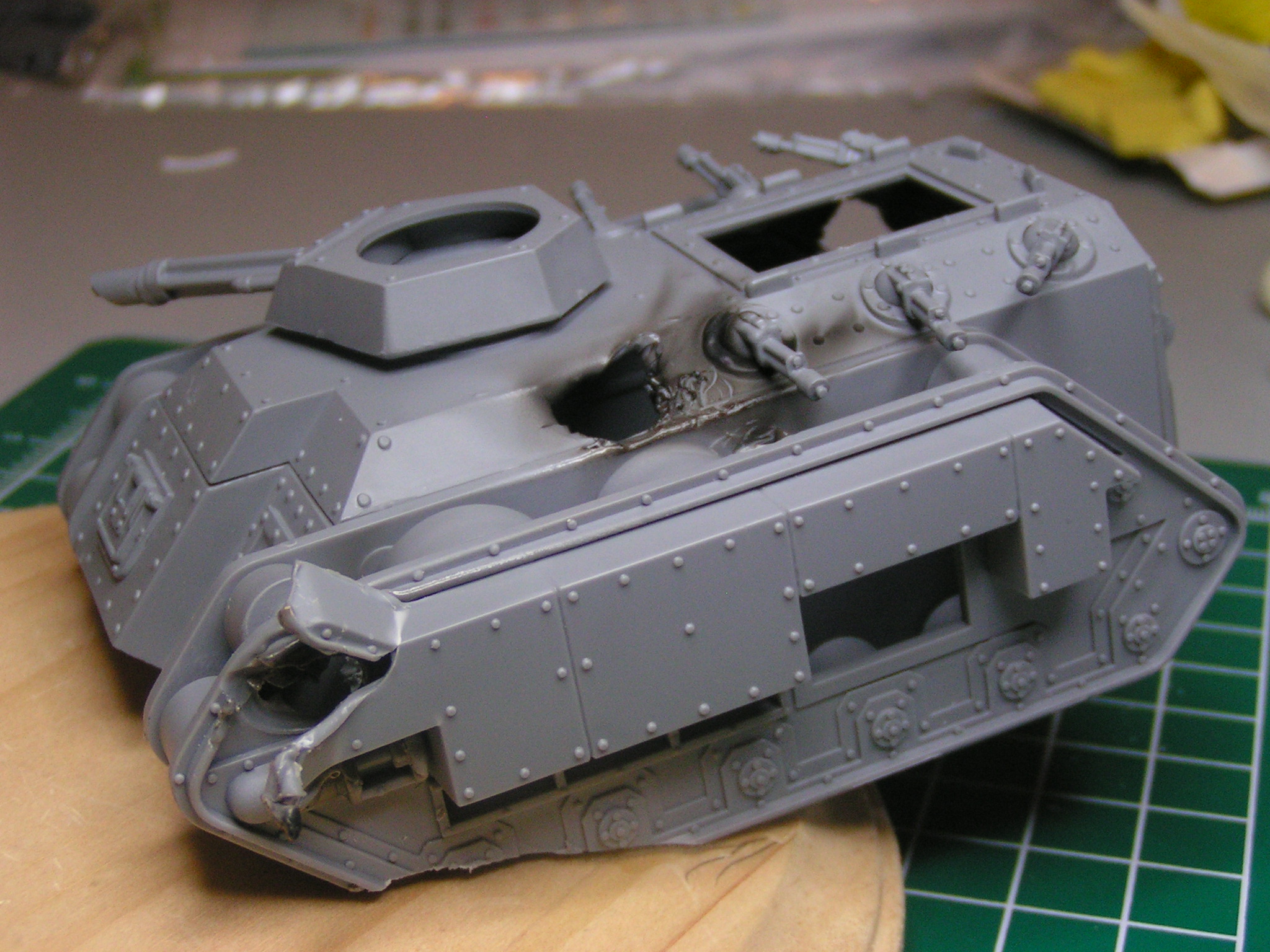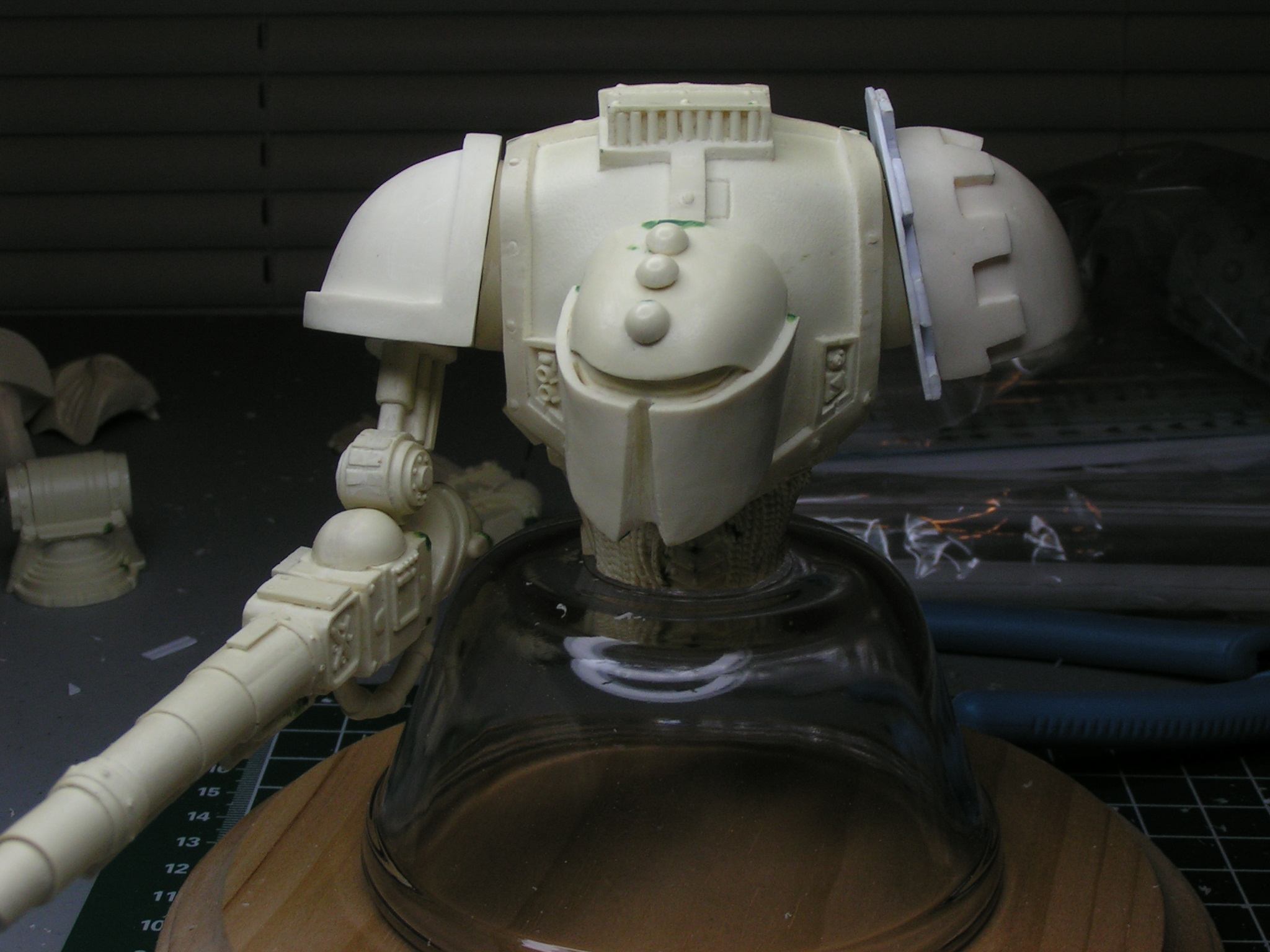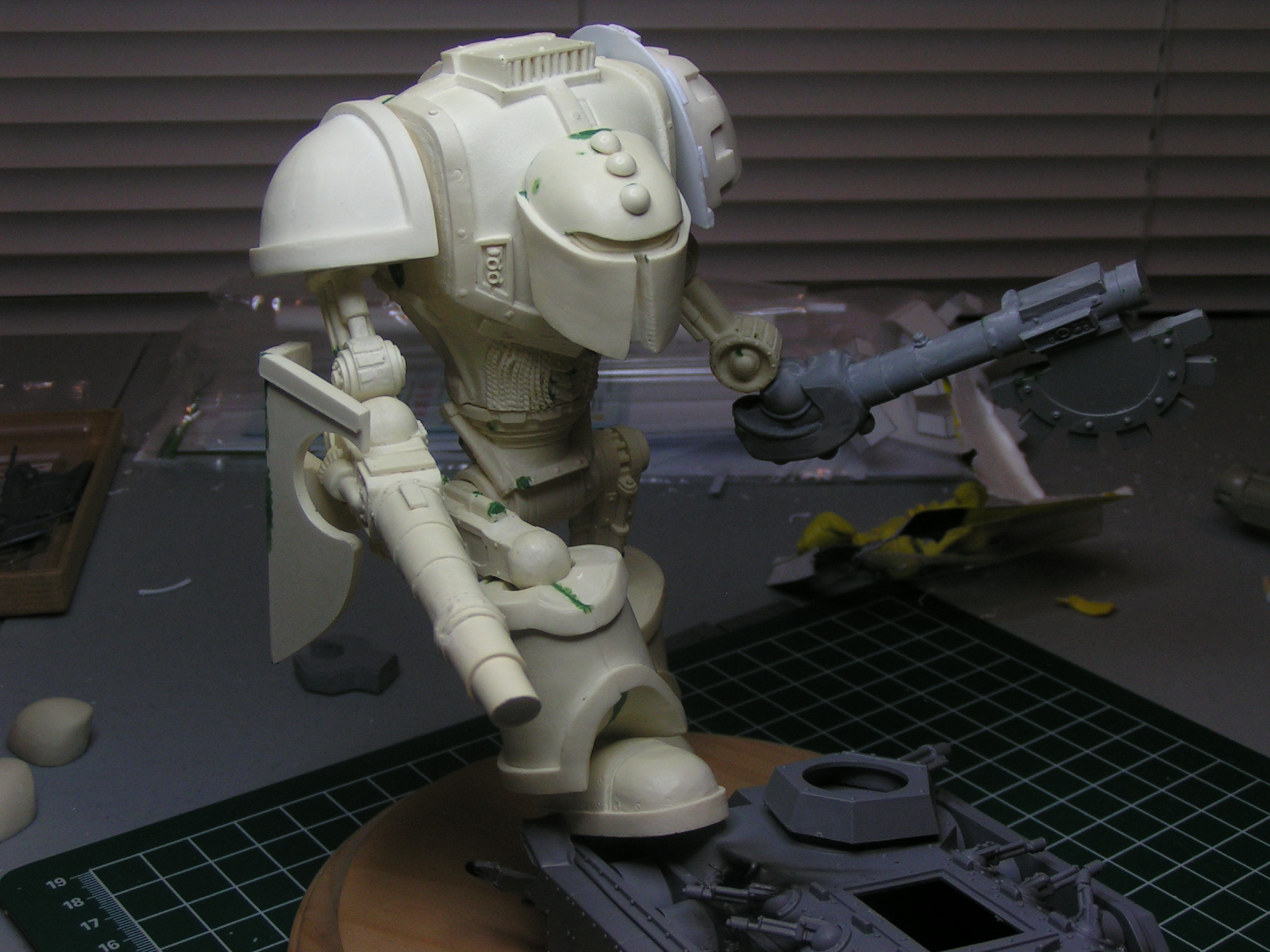 Next update. This is the base I am working on for the knight. The last three pics are of the battle damage the knight has inflicted on the traitor Chimera with his battle cannon.