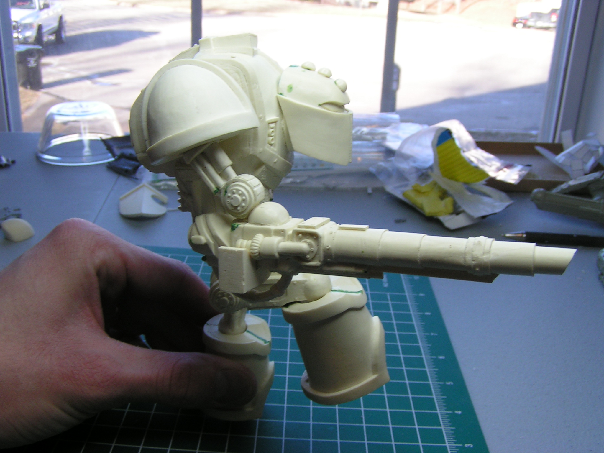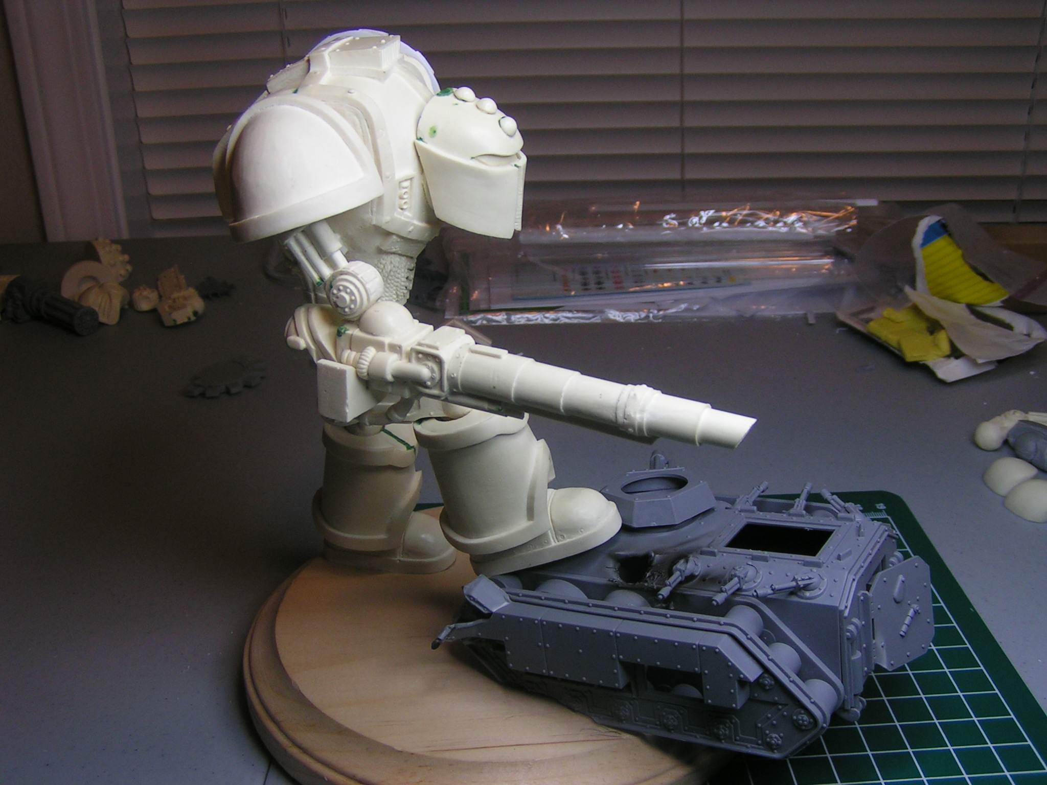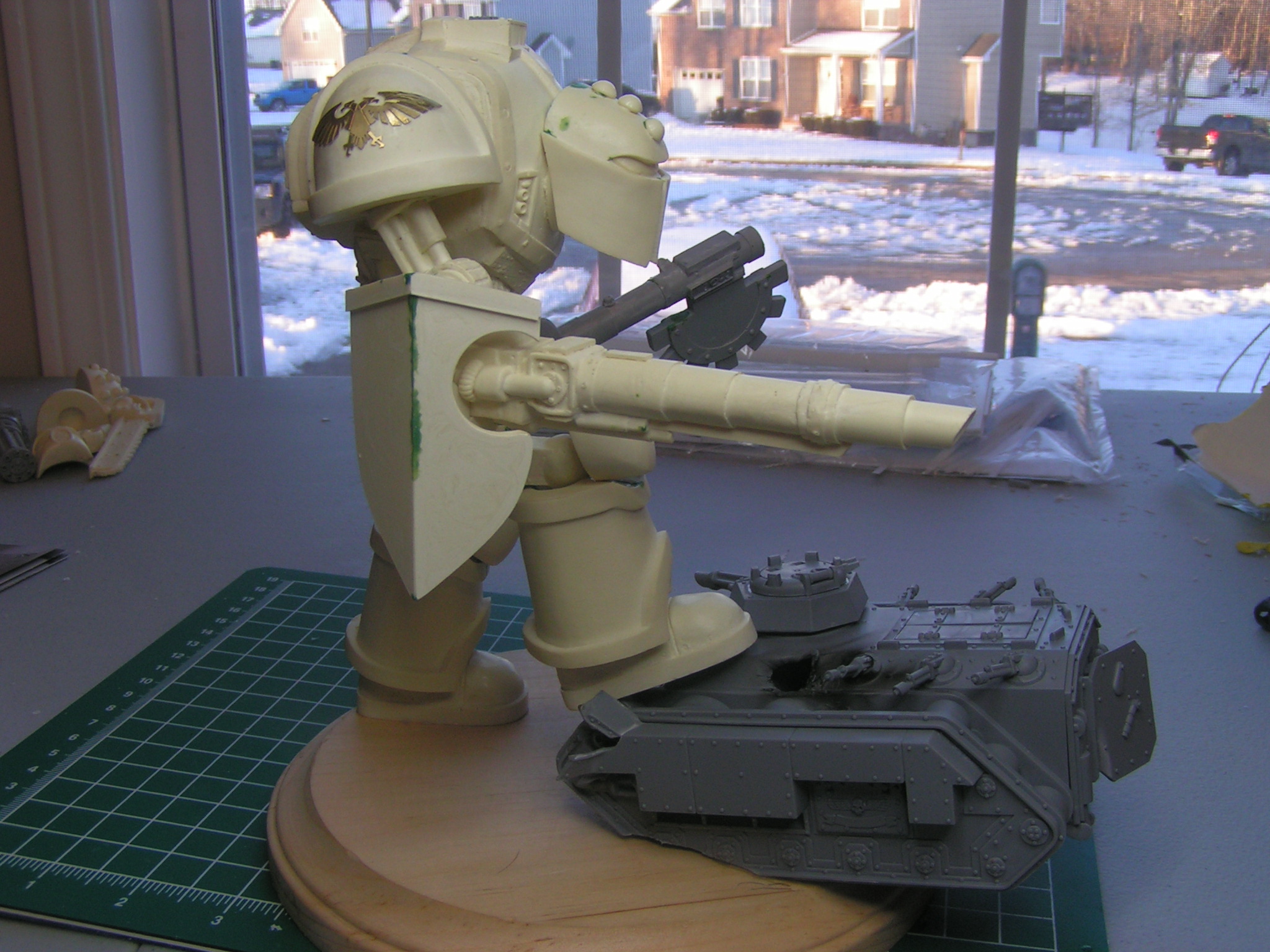 Here are the first set of pics taken. My plan is to make him look like he's just destroyed a traitor guard Chimera, and he's lining up his next shot.