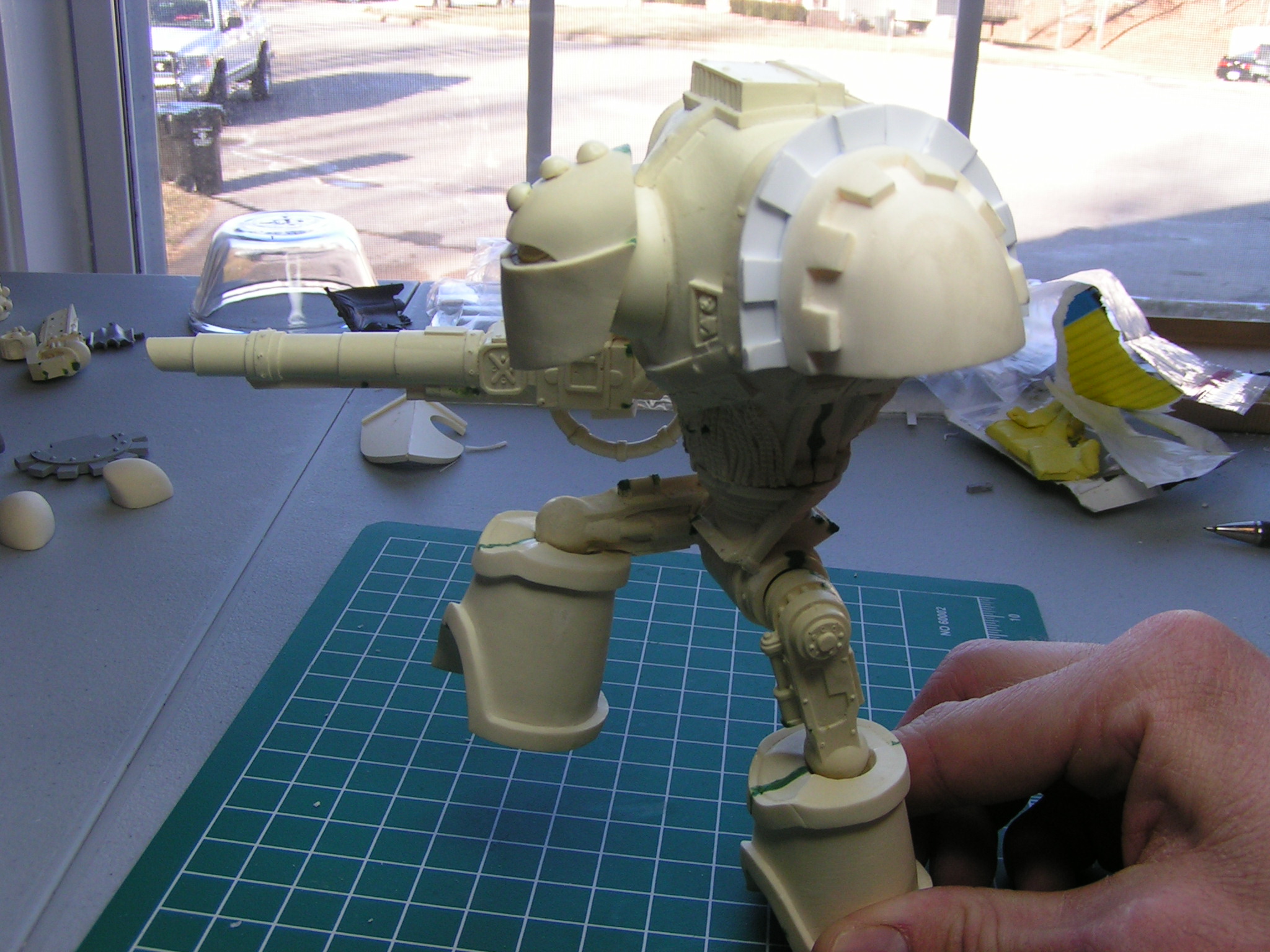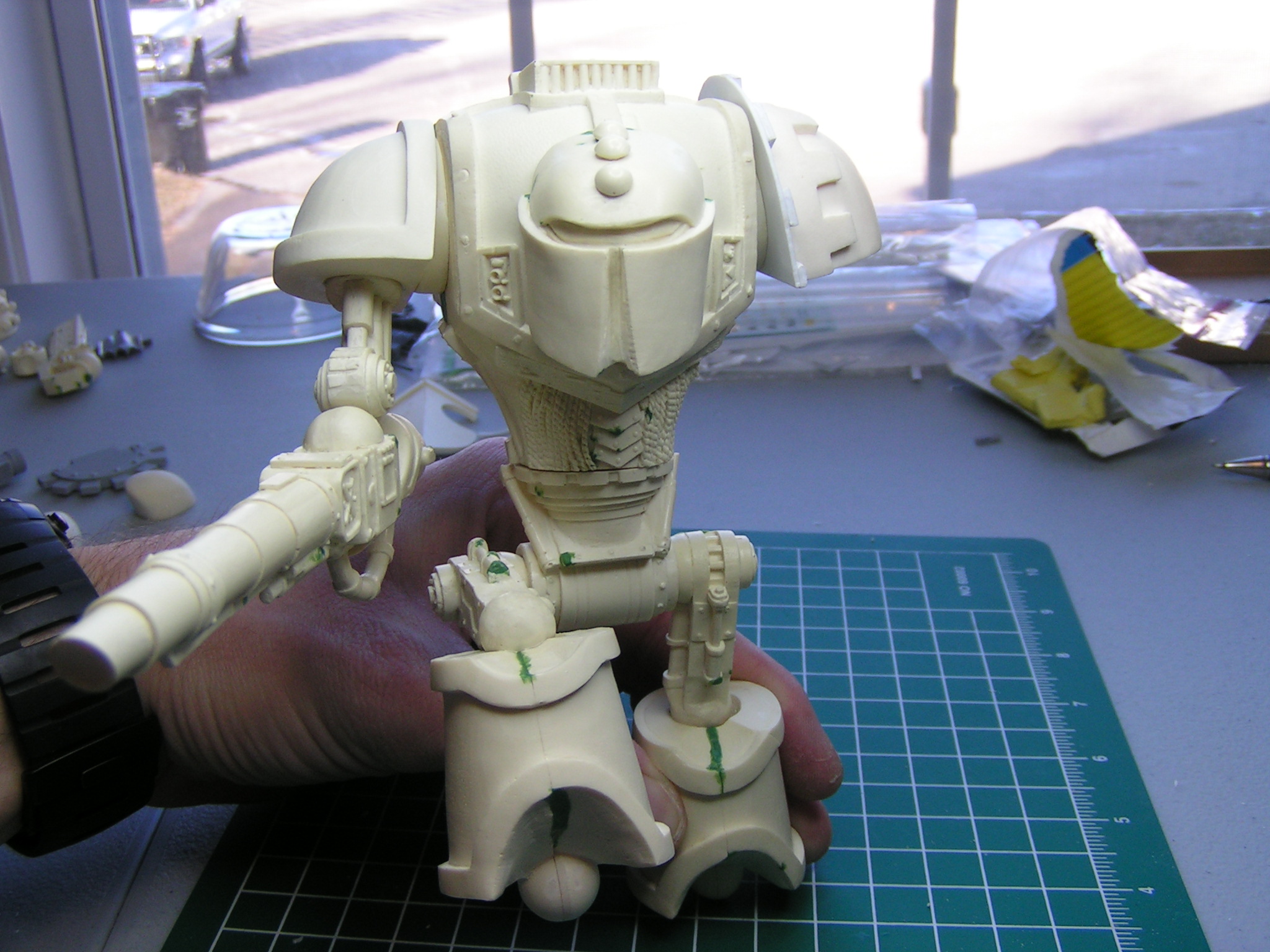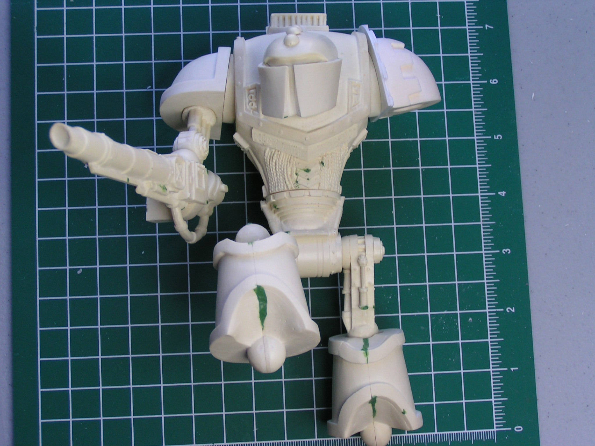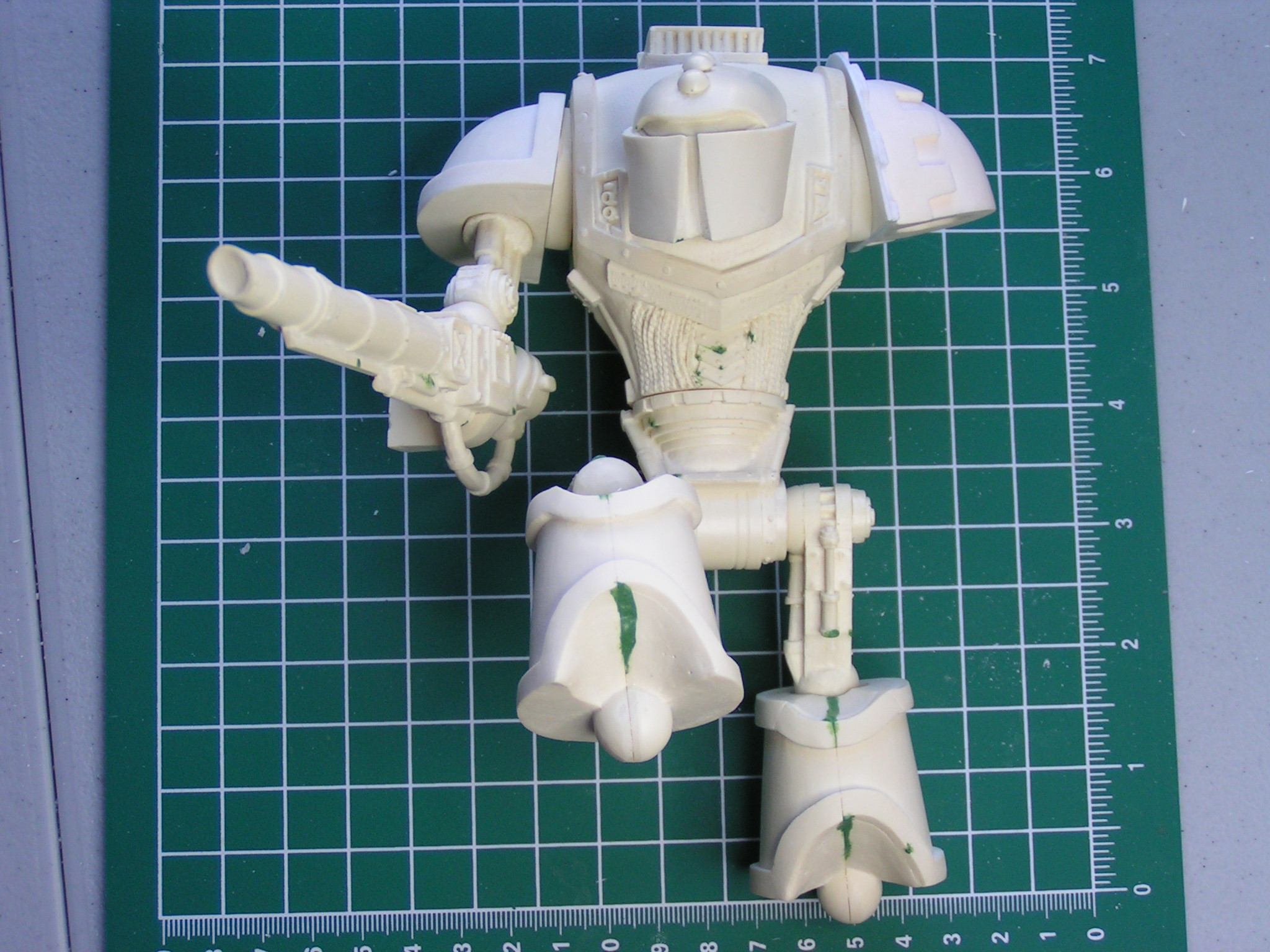 I had hoped to get some solid work done and complete this knight this weekend, but alas the time was not available. Oh well, I did at least manage to get his Close Combat Weapon in place and do my final dry fit for his stance. Next step is all the minute details, ie AM symbles, cables, ext. Anyway, here are the next set of pics.