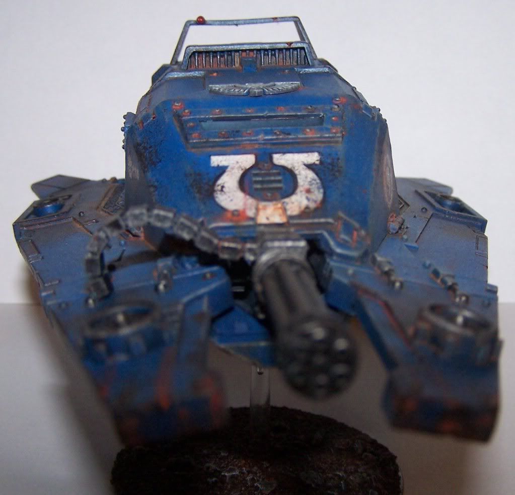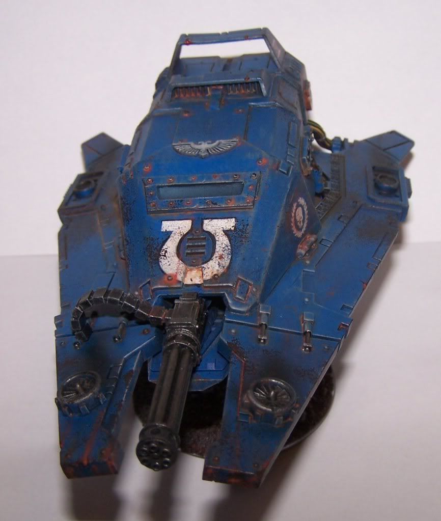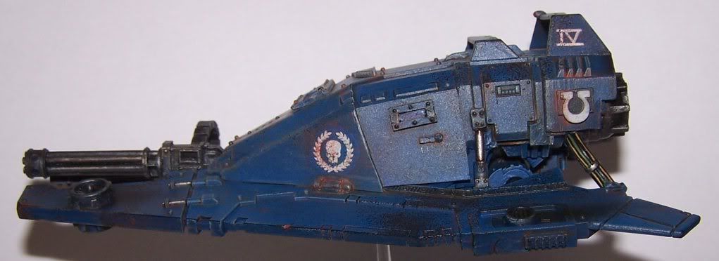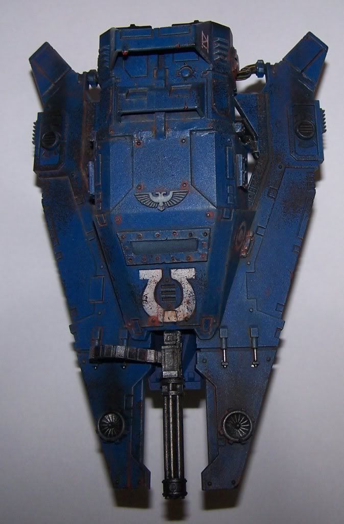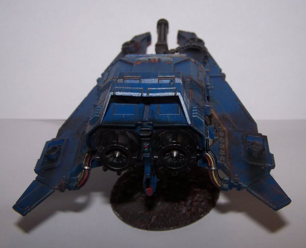 I really like the pain jobs top notch and at that level. But I'm going give a small constructive crtitizme. The belt feed for the assualt cannon is not placed well. It doesn't it with lines of the vehicle and more imporantly how the what would be the top fins to the drop pod look like the move and help with flight control. The belt feed would hinder that and just sticks out to me like a sore thomb.