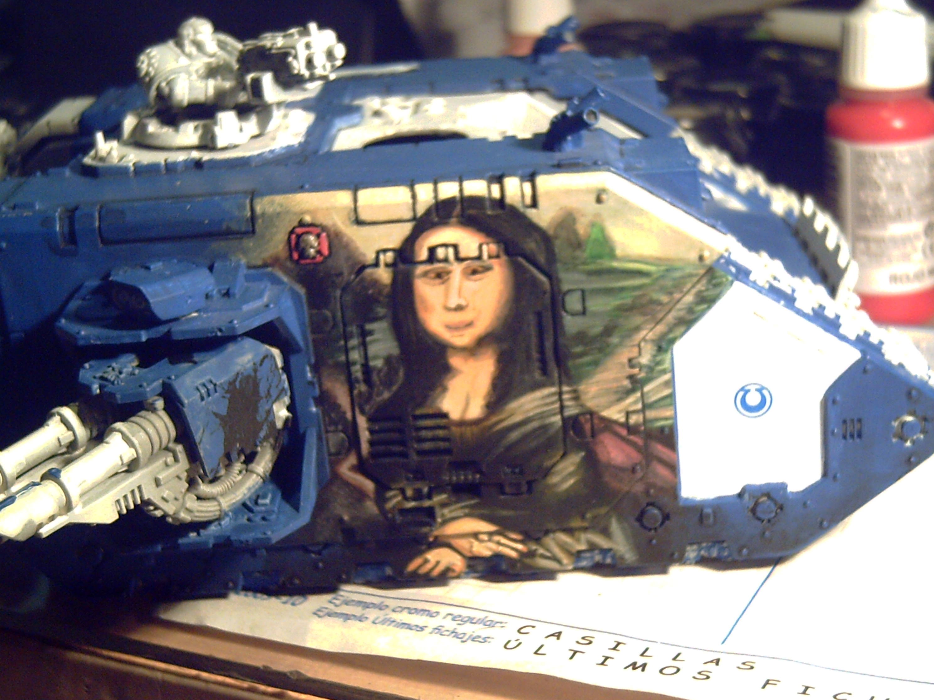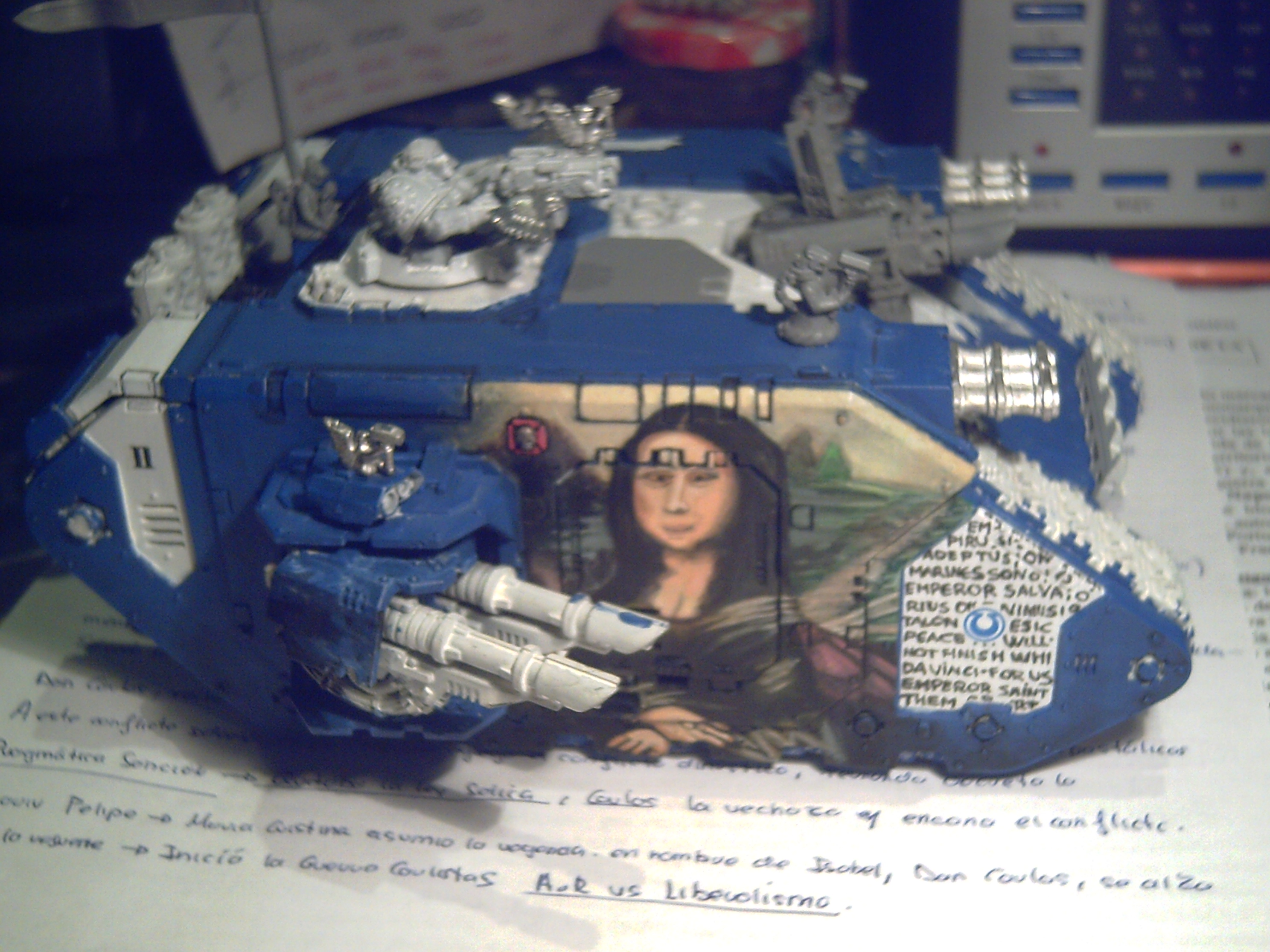 hehehe, yes i need to work in mOno lisa face xD sorry if she is a bit Bad painting, now, i convert the Land Rider, i loock for a General´s Tank, i will use it to transport my Leaders so there are some pictures with the Land Raider conversion.