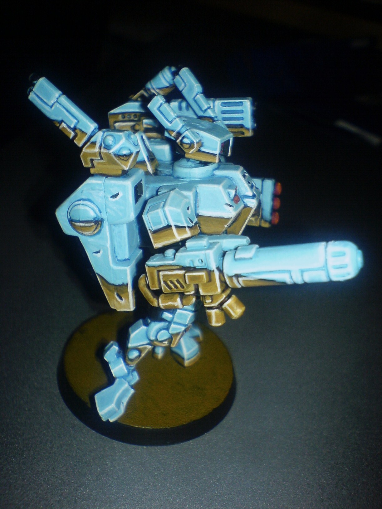 GW (Each month the winner picks a model costing £12 or less for the next month). It's my first go at painting Tau and seeing as i had a lot of flat areas to work with, i thought i'd have a go at that fancy SENMM effect i keep reading about