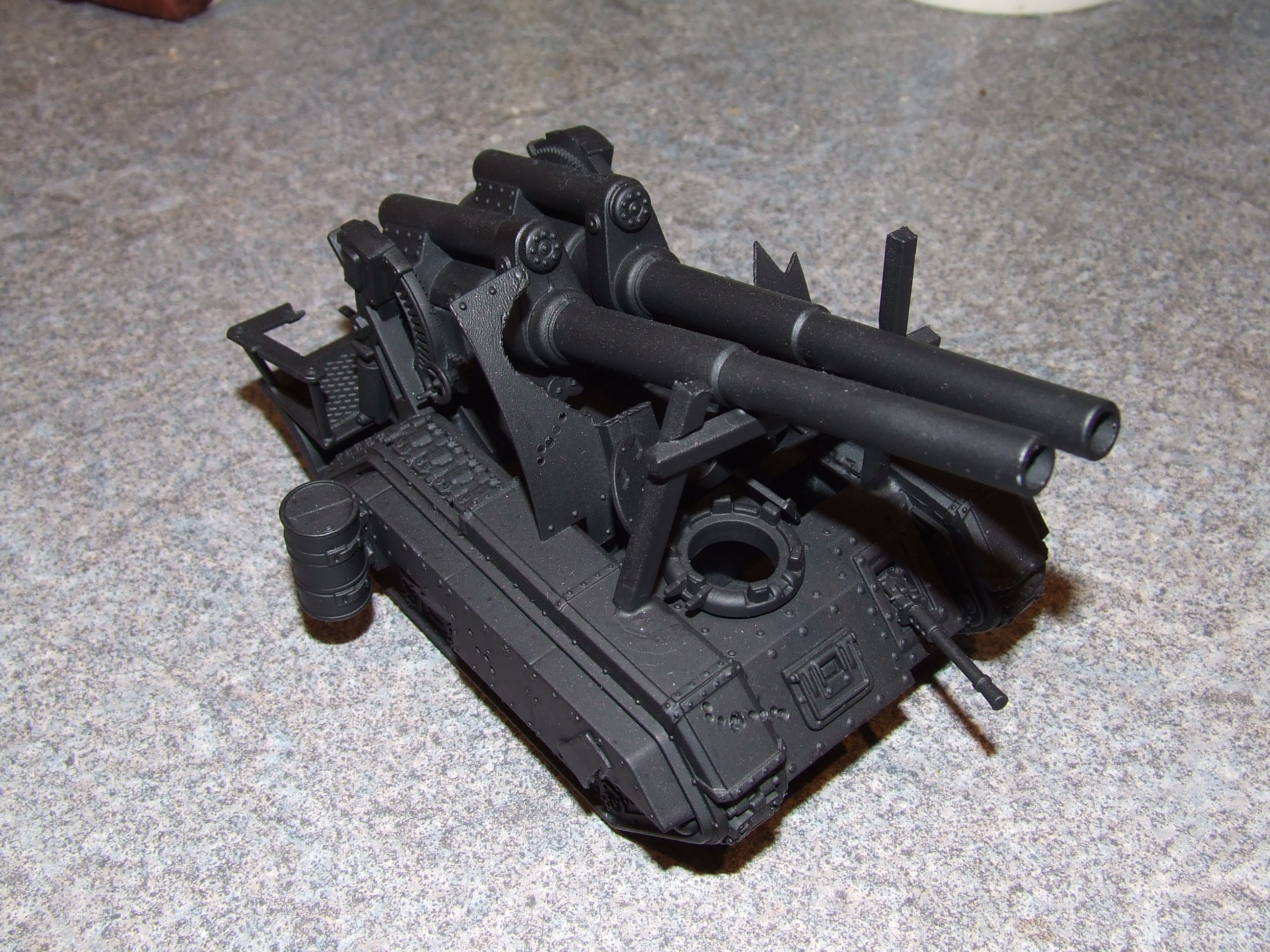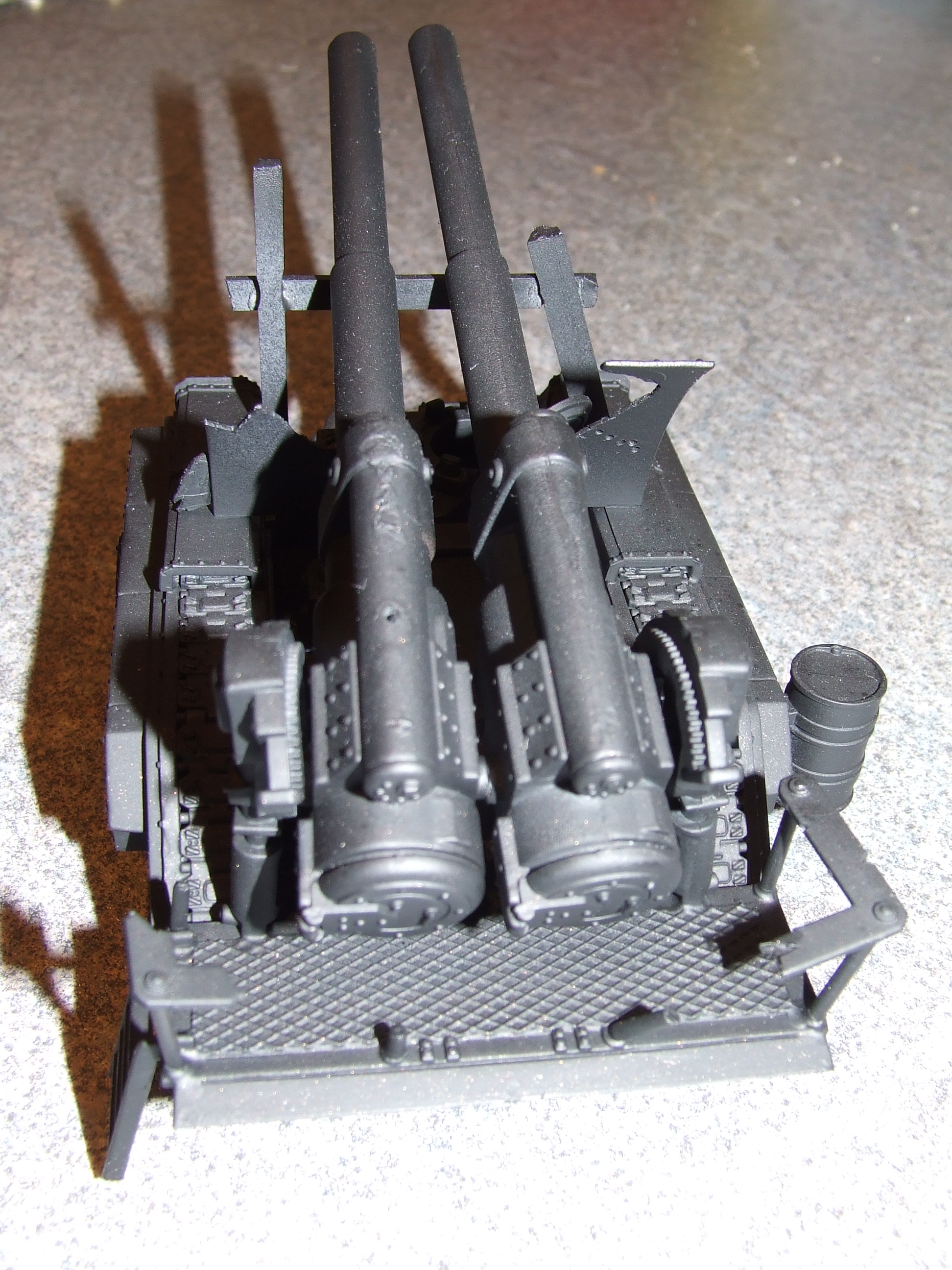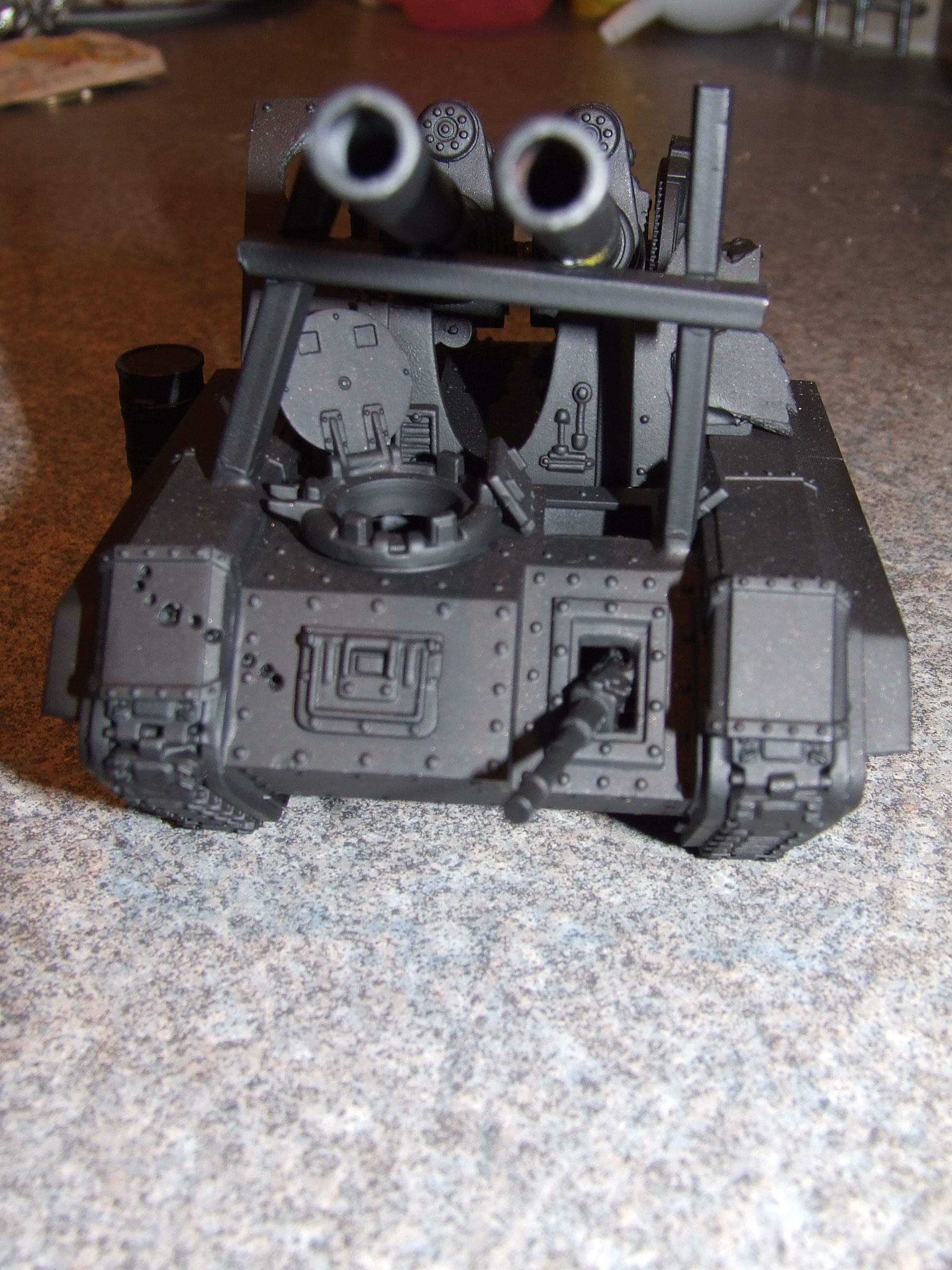 I think it's looking good apart from the bits of sprue holding up the gun. I don't think they are actually necessary, but if you do want a rest for the guns to sit on you need to hide the fact they are so obviously pieces of sprue, because GW sprue is quite distinctive.