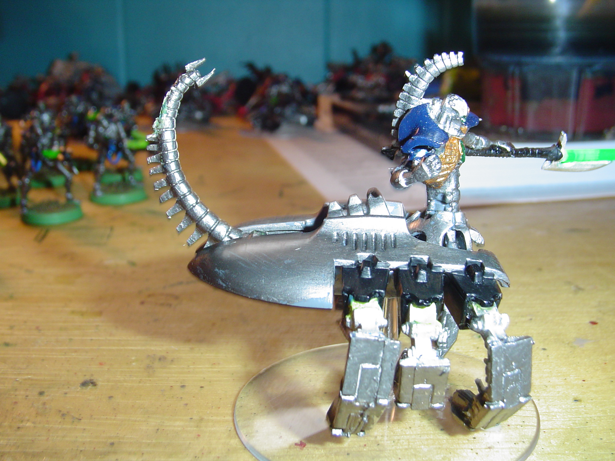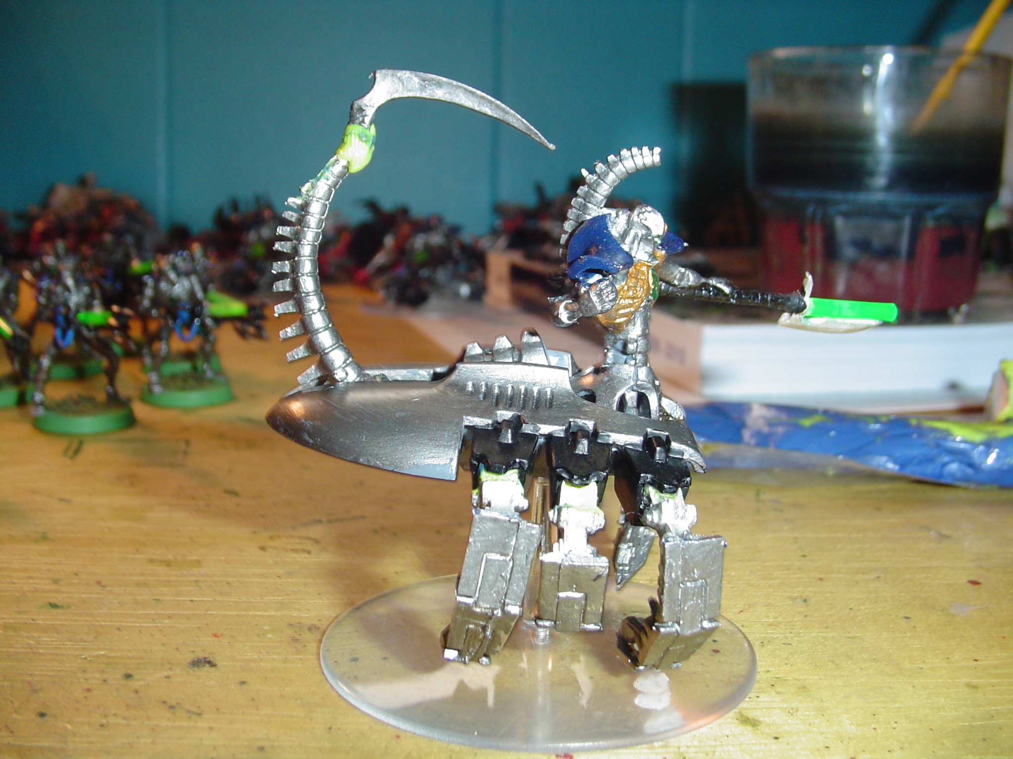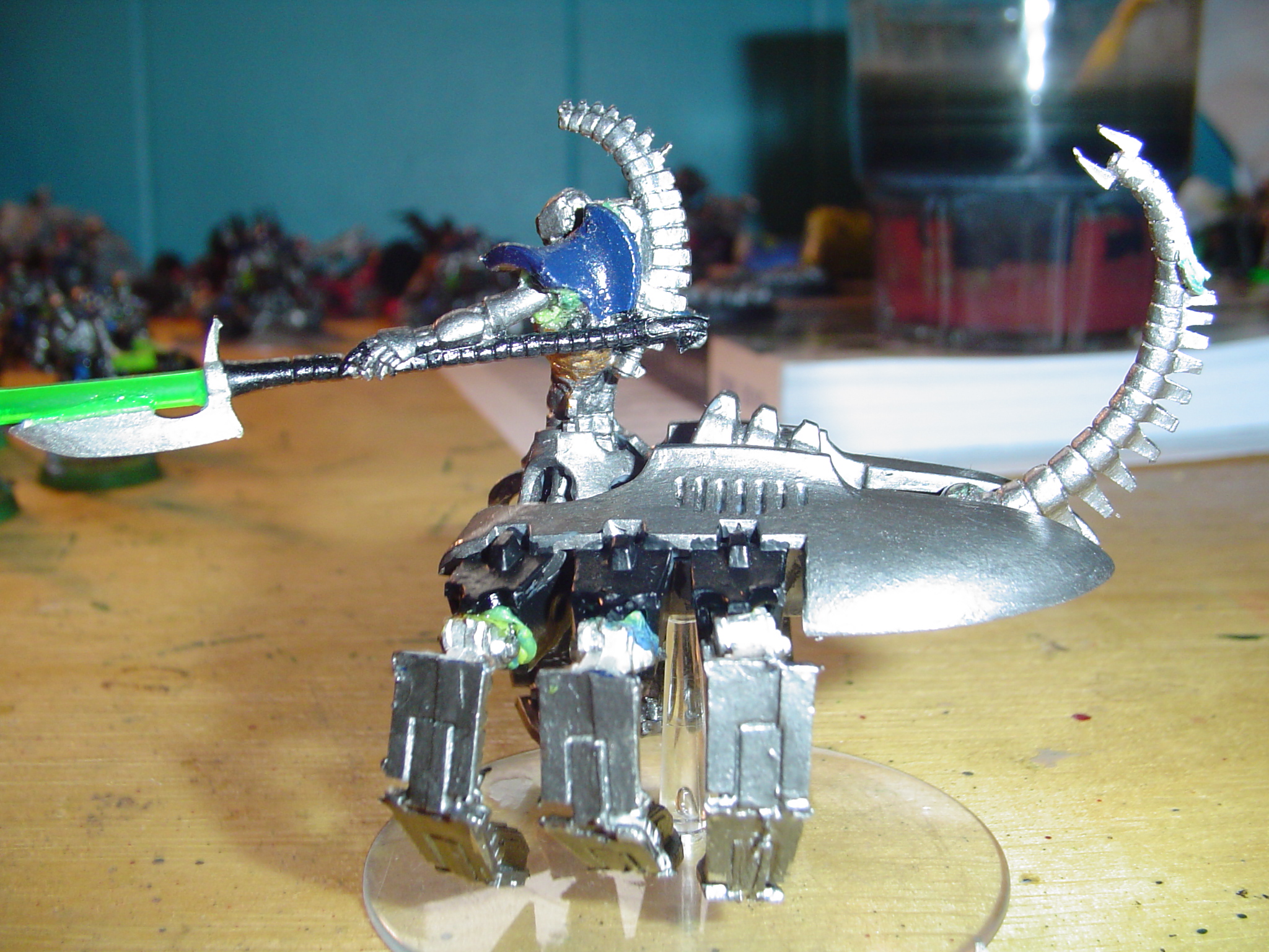Made some alterations, Clipped down the body to make the tail more visible and used some warscythe ends for the tail, now it looks more Necron, less 'here is a quick conversion' Still have to finish painting and 'Ard coating but that is what the new piece looks like.