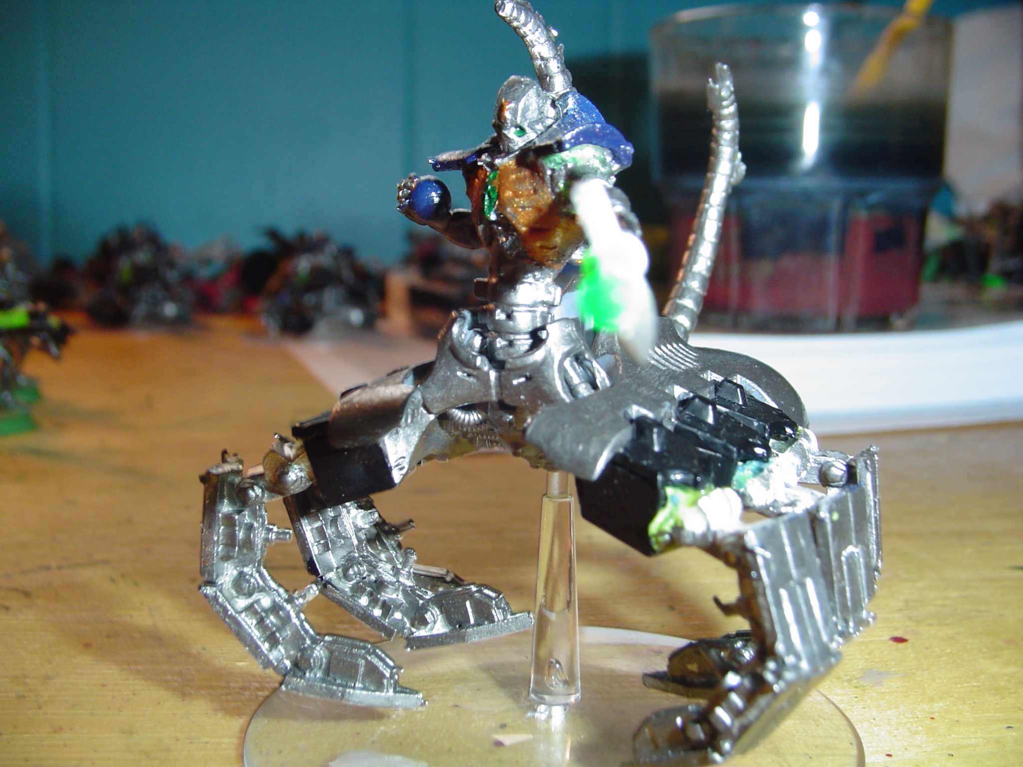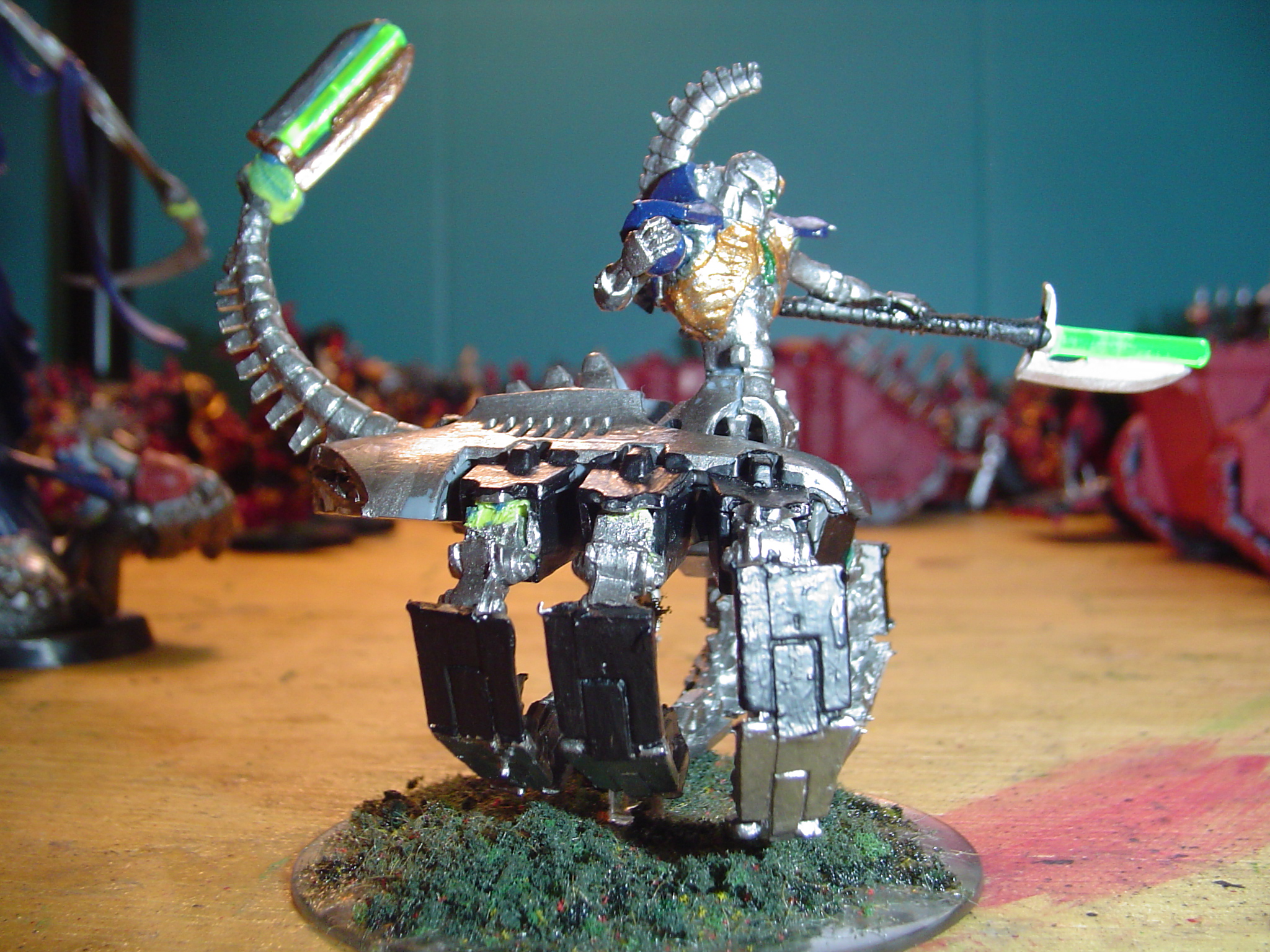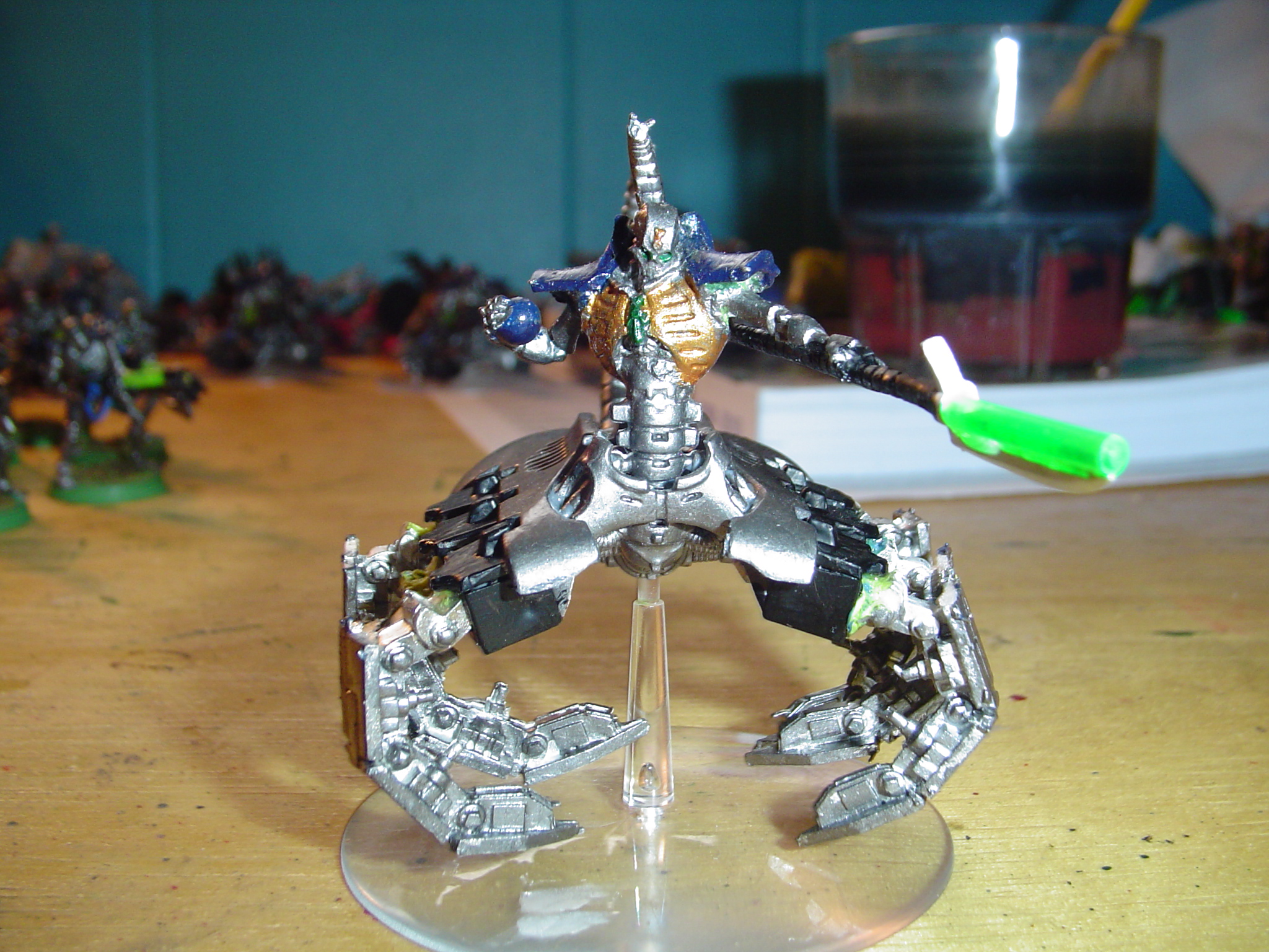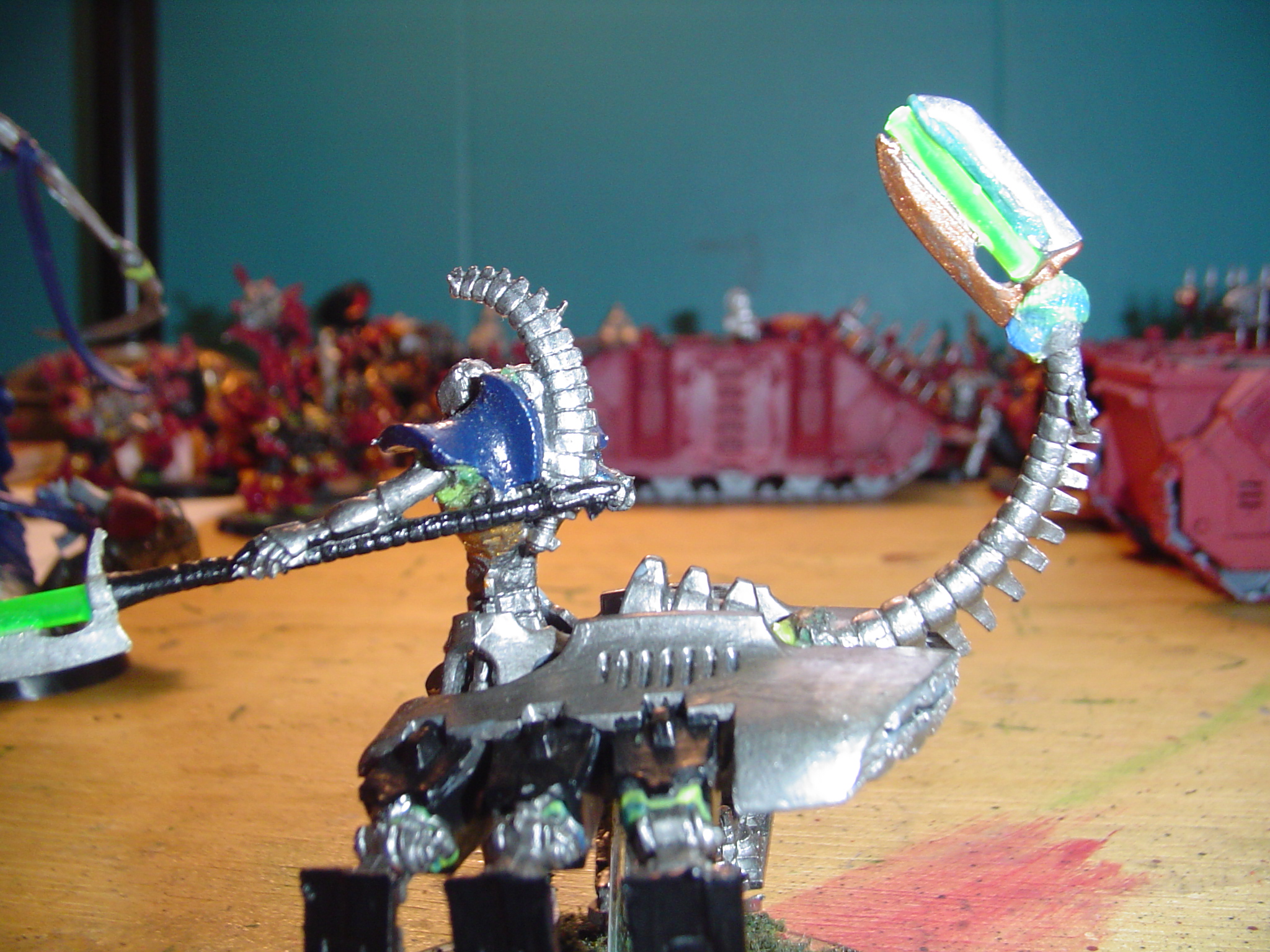 Made some alterations, Clipped down the body to make the tail more visible and used some warscythe ends for the tail, now it looks more Necron, less 'here is a quick conversion' Still have to finish painting and 'Ard coating but that is what the new piece looks like.