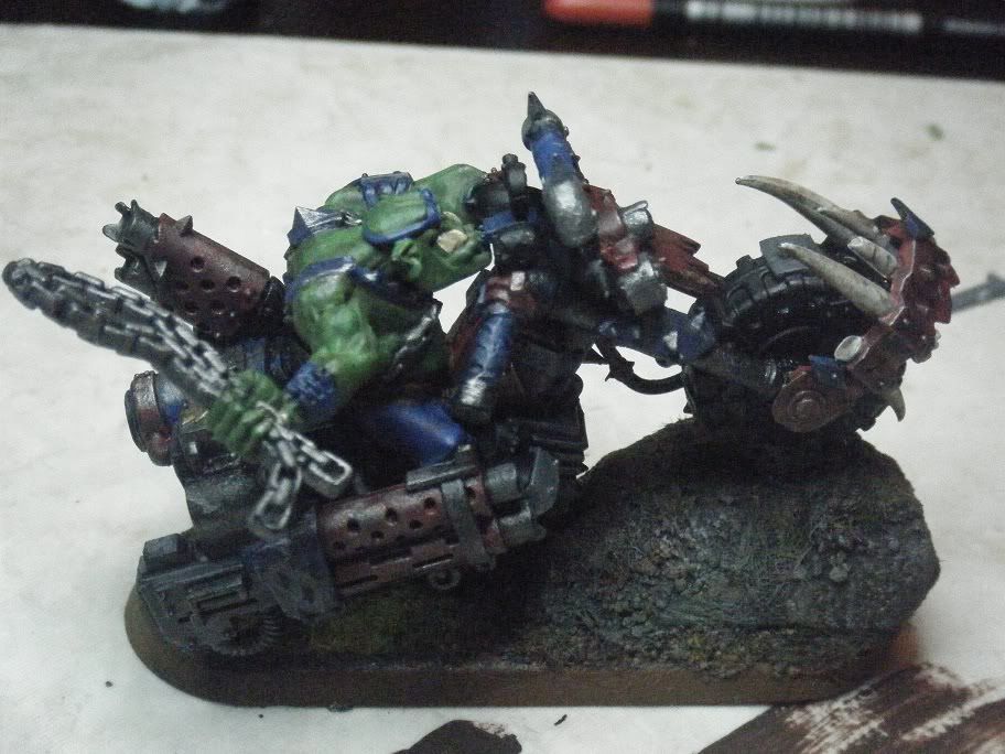 I also agree on what nyyman said about the ork skin. Needs a bit more depth, which can easily be achieved through a wash (thraka green or devlan mud, if you want my opinion).