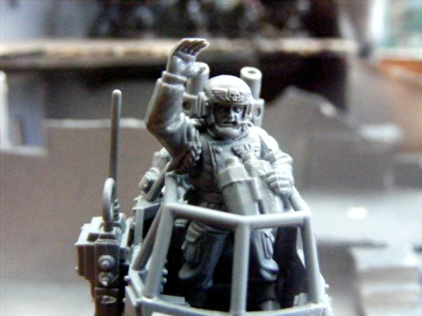 @Kanluwen- The driver is standing so as to get a good view of the enemy he is ambushing (as the wee story tells) The comms booster is just to look cool, and on planets with high electronic-y force stuff (read gunheads) they would need them as normal comms don't work properly. He is not a target as he is ambushing an enemy column or convoy from a ruin of some kind (also in the fluff story) But thanks for the thoughts. Keep it coming!