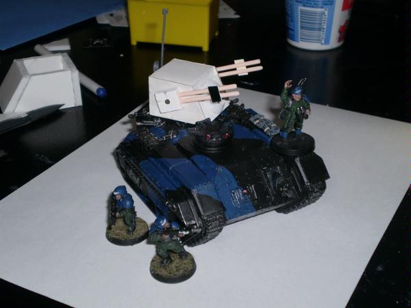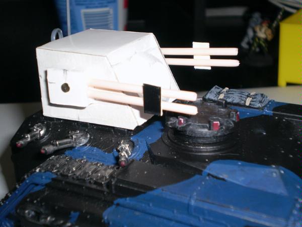 I made this almost entirely out of 5mm foam-board. It's quite sturdy, although I couldn't think of a decent idea for the radar dish on the front, so I just carved one our of spare board, so it does look kind of half-arsed. The entire turret is magnetized to a flat piece on the back.