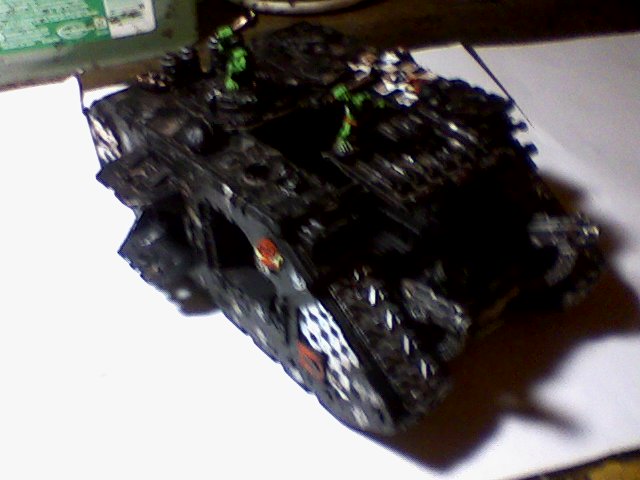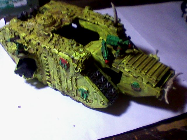 I did add some glyps and WFB Orc shield-bosses, but the crappy pics that I get from my phone don't really show them. I personally think that lots of converted Ork vehicles are too busy. This way, they take up a minimal amount of table-space, so they can easily remain within KFF range.