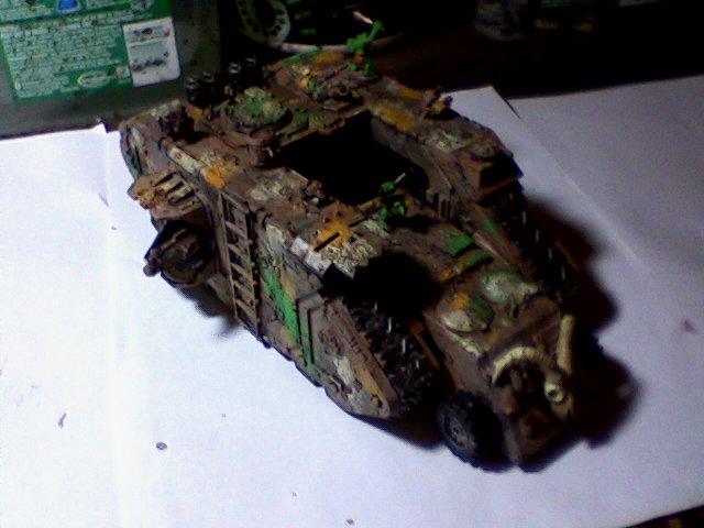 I already have three tooled-up battlewagons that I've used with mixed success. They have lots of modelled options, including 'ard case, which I've come to regret. Now with my decision to favor the Orks over the red-haird stepchildren that the followers of chaos have become, I decided that I needed some battlewagons that are more suited for aggressive uses. With this goal in mind, I savagely attacked their Land Raiders and Rhinos until I had some suitable additions to my Ork army. They would only have a couple of big shootas each to sacrifice to weapon destroyed results, coming in at a trim 100 points each. That way, I can take advantage of their positive attributes (Front AV 14, open top) without them demanding excessive resources.