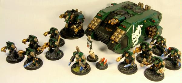 I just finished up 1000pts of my Deathwing army. It's the Disciples of Caliban successor to Dark Angels. Here it is: