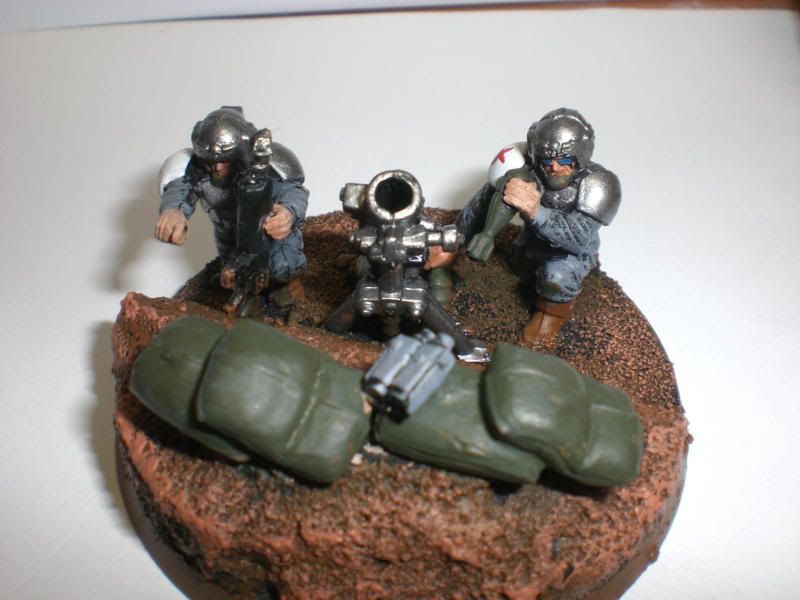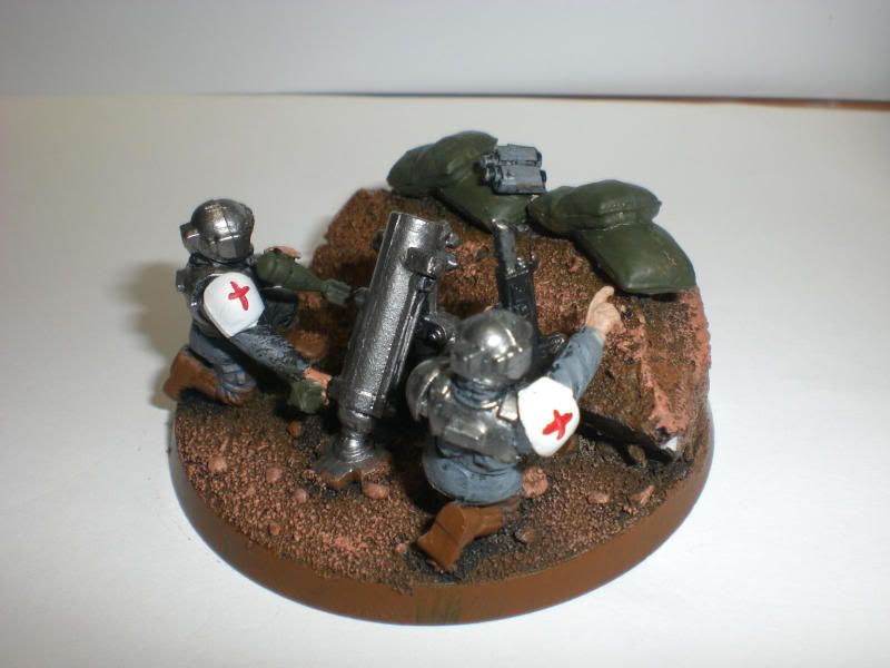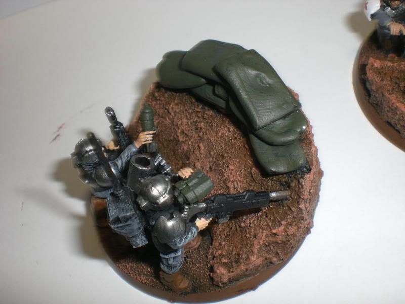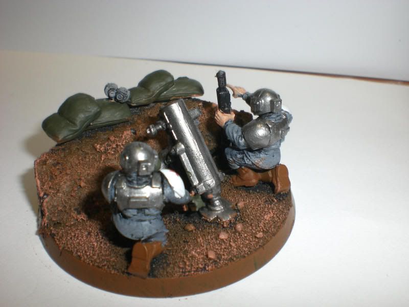I decided to ad a bit of flair to my mortar teams.. I figured what better way than with mortar pits! I made 12 of these, and only these two are painted so far.. Let me know what you think!