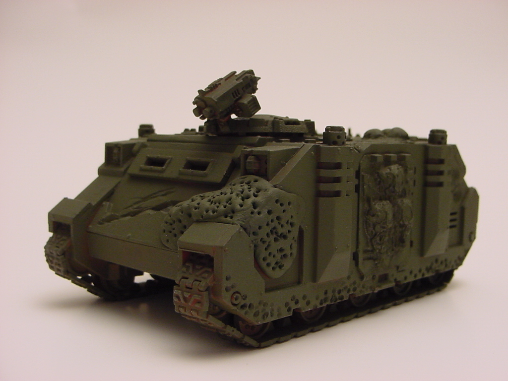 1 CSM Rhino w/ FW Deathguard doors and conversion work basecoated green w/ airbrush: $20