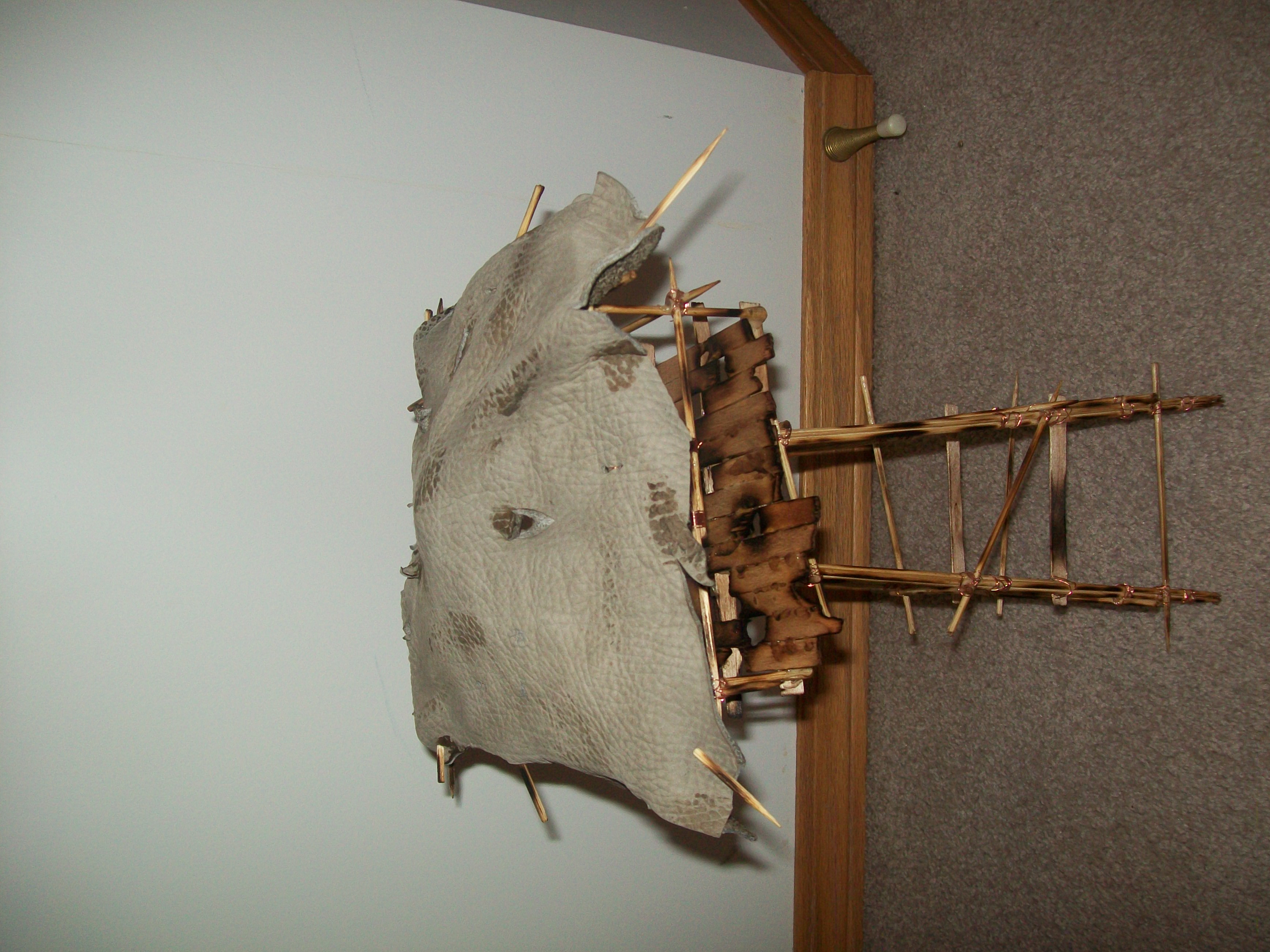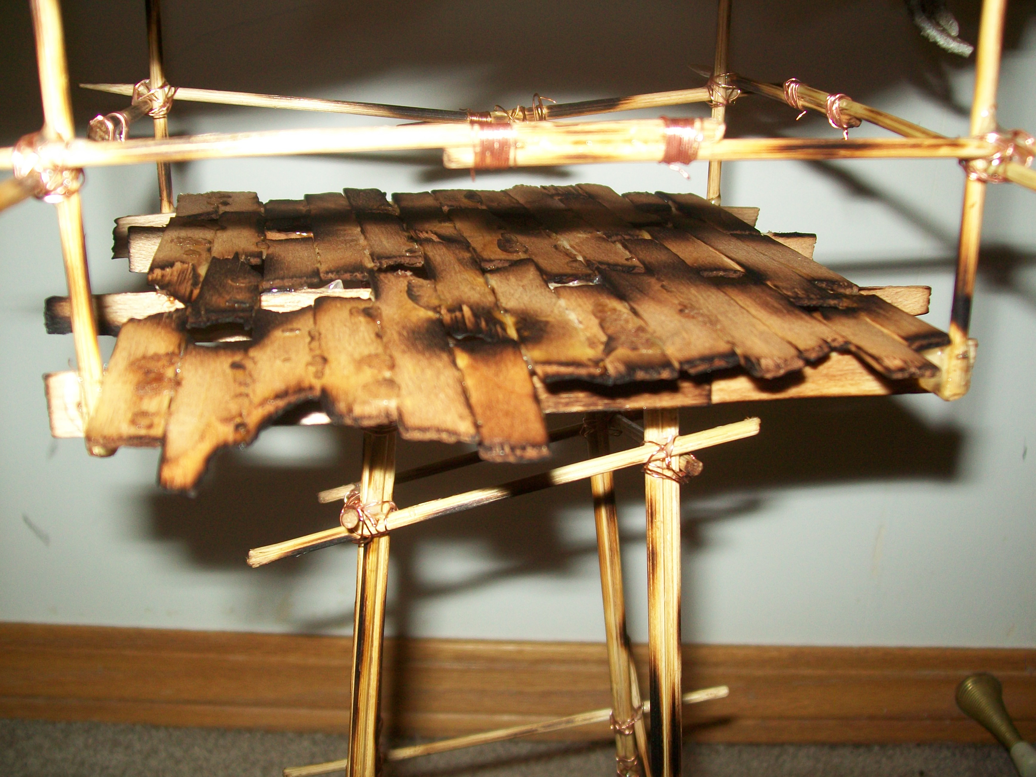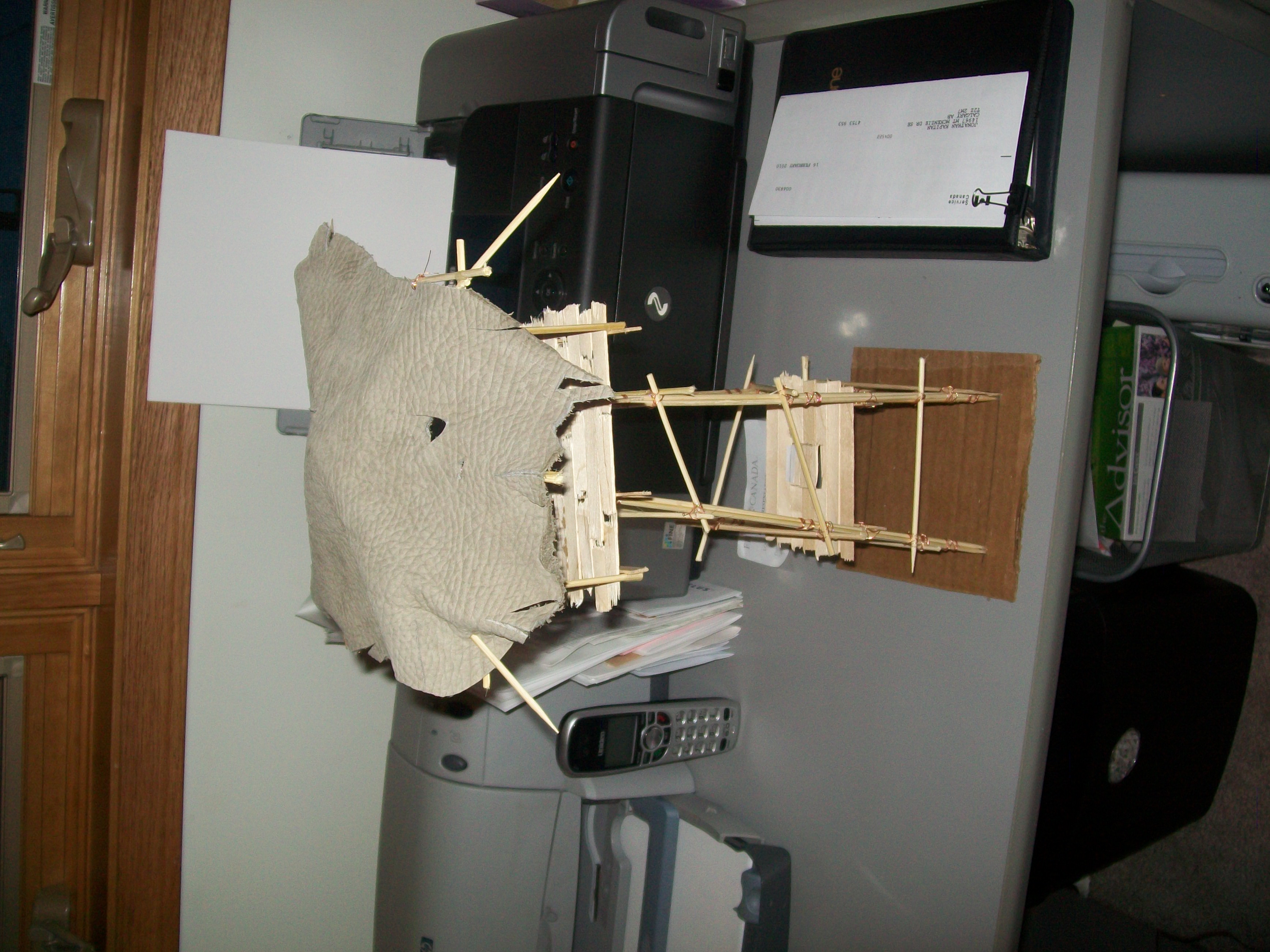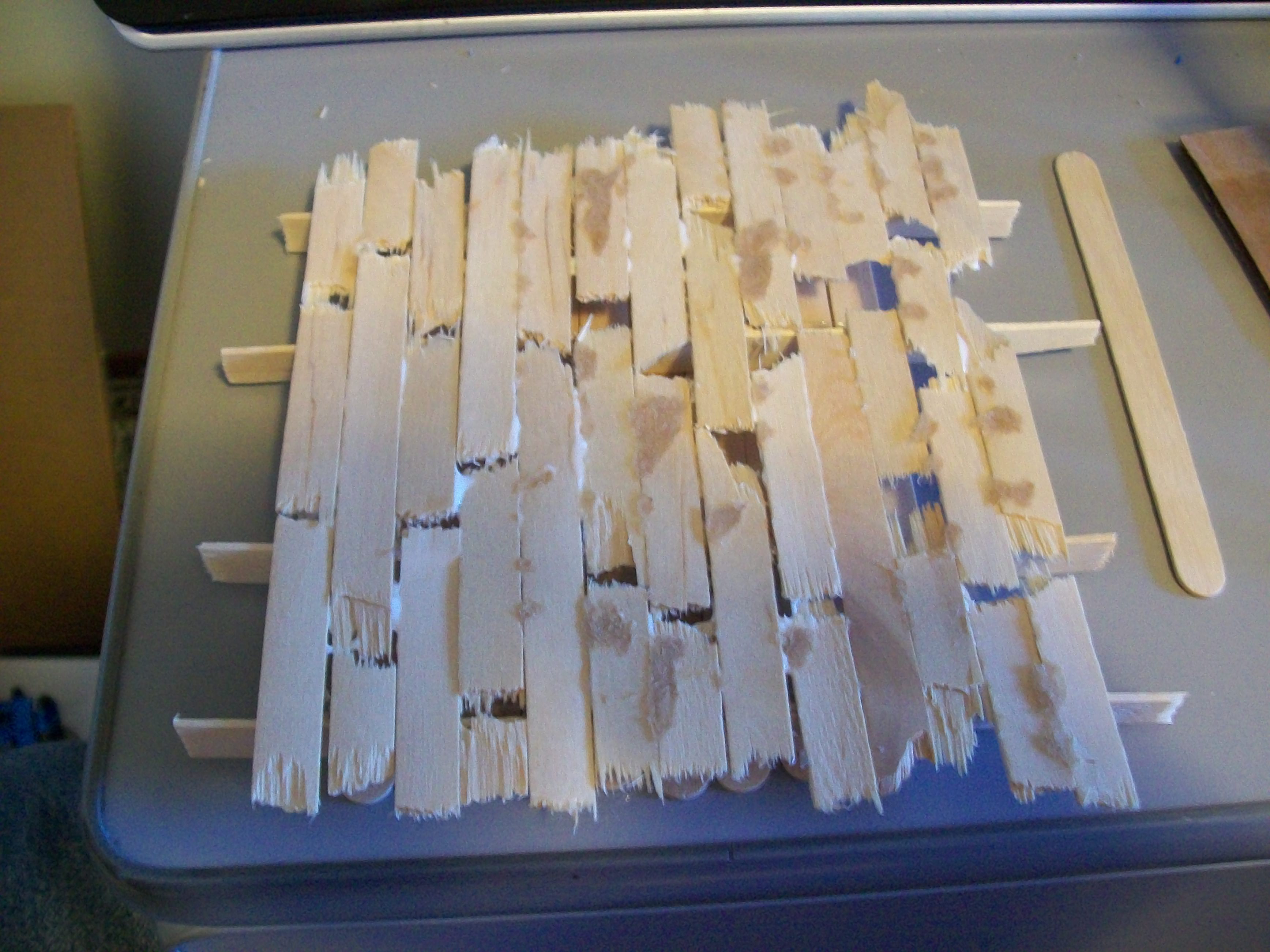 Here is the start of my 1 foot tall orky tower which will have special rules for it when I play with my friends. (Like units fire 1.5 times farther or something like that) Its made out of bamboo skewers, wire and cardboard. The first thing i did was lash 3 skewers together with the wire to make poles that looked orky.