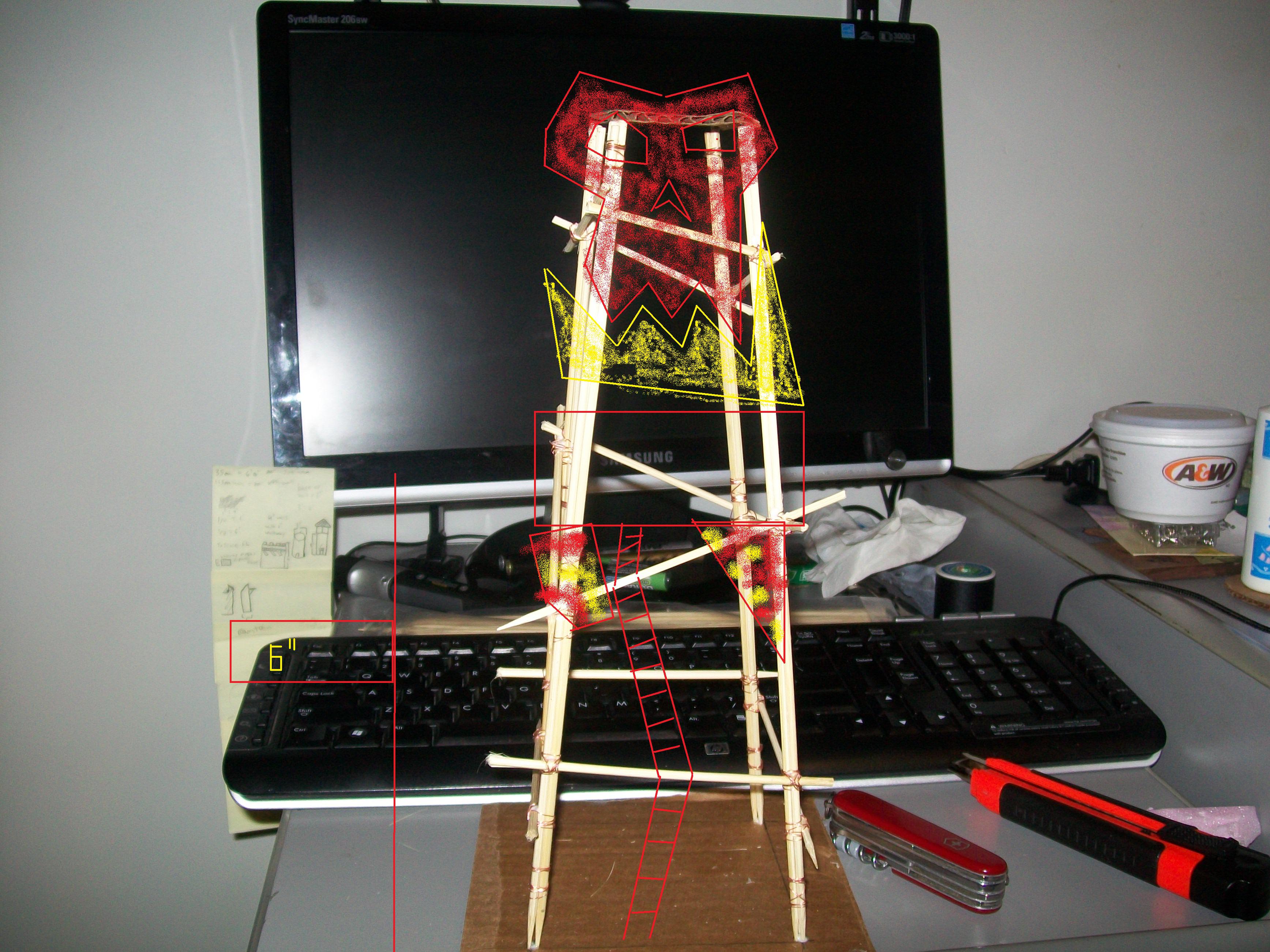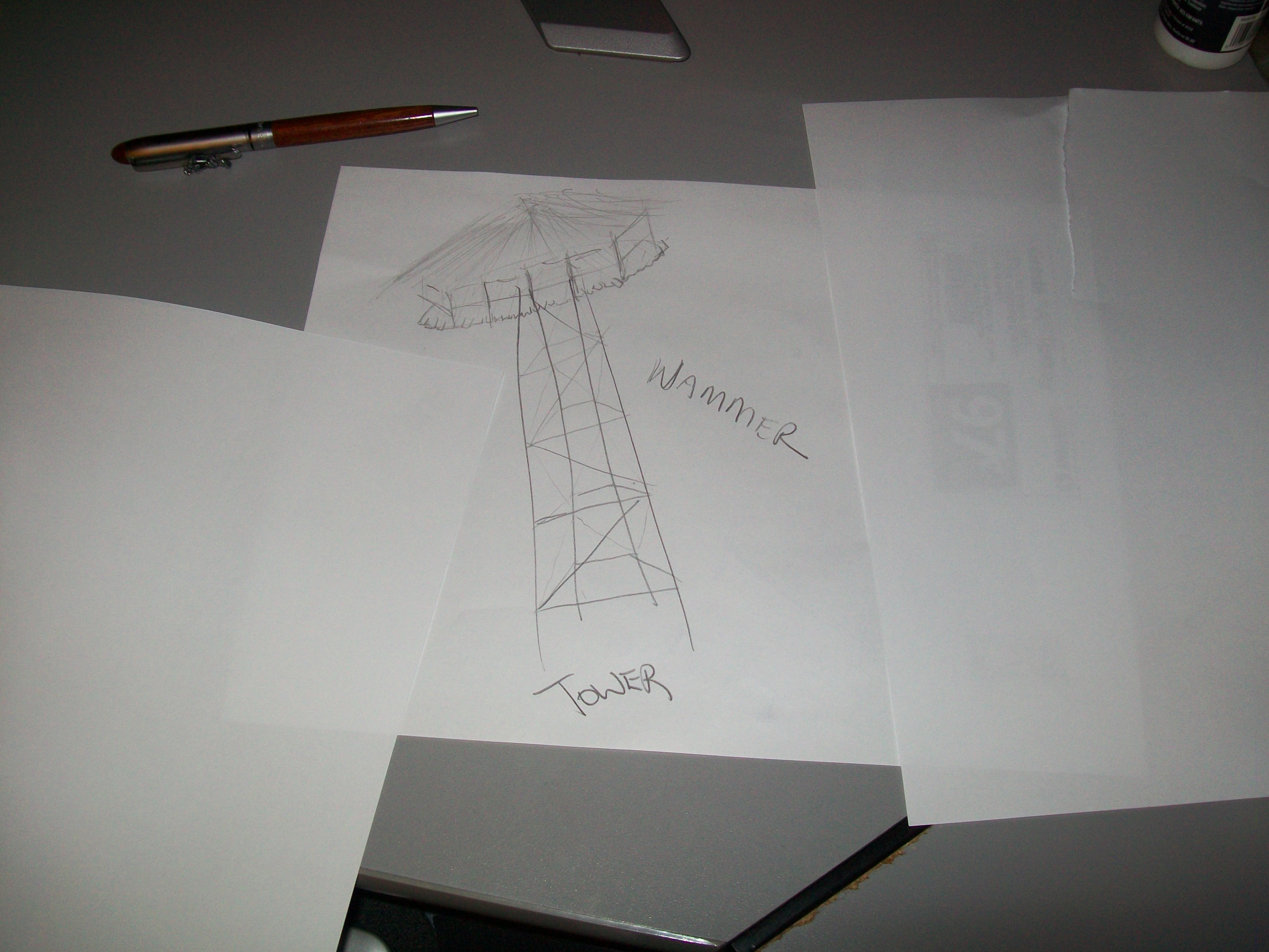Base and some support poles Automatically Appended Next Post: Main Tower built now just the floors and roof to go  then paint and stain (flock and rocks too)