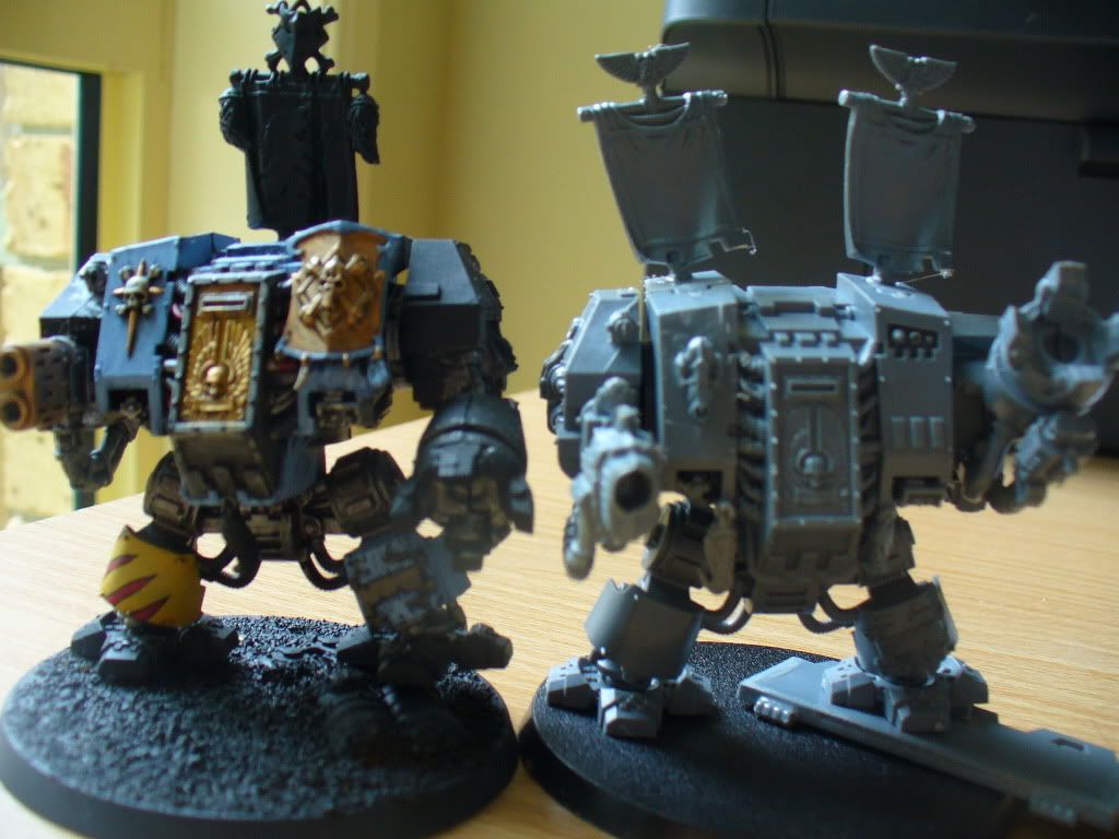 Really, really, really good looking mods you've got there. For the dread with the twin banners though I would think about getting some brass rod and creating more of a V from a central point. Maybe even hang a greenstuff pelt between them.