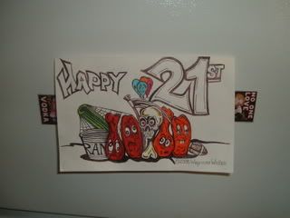 Week 21 rolls around, and the wings ARE still there!!! We decide "feth it, it's on!" and start preparing for the wings' big day. Her roomate being a pretty good artist got in on it and drew up a card for the wings.