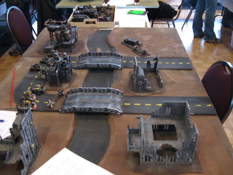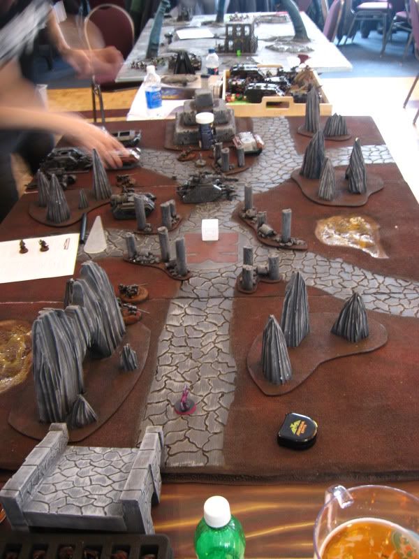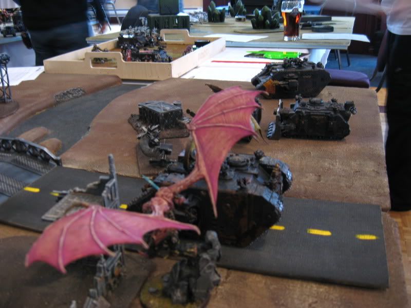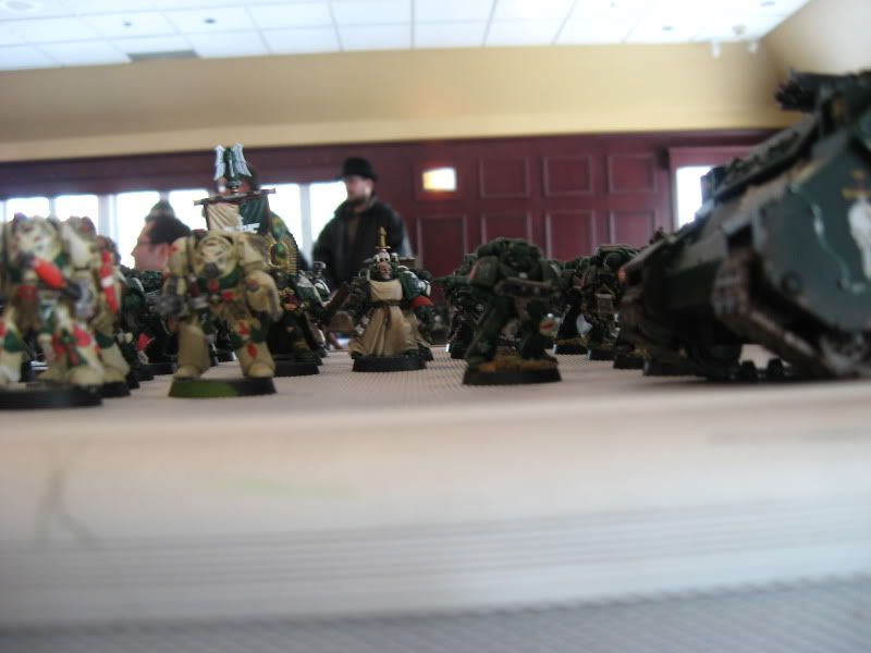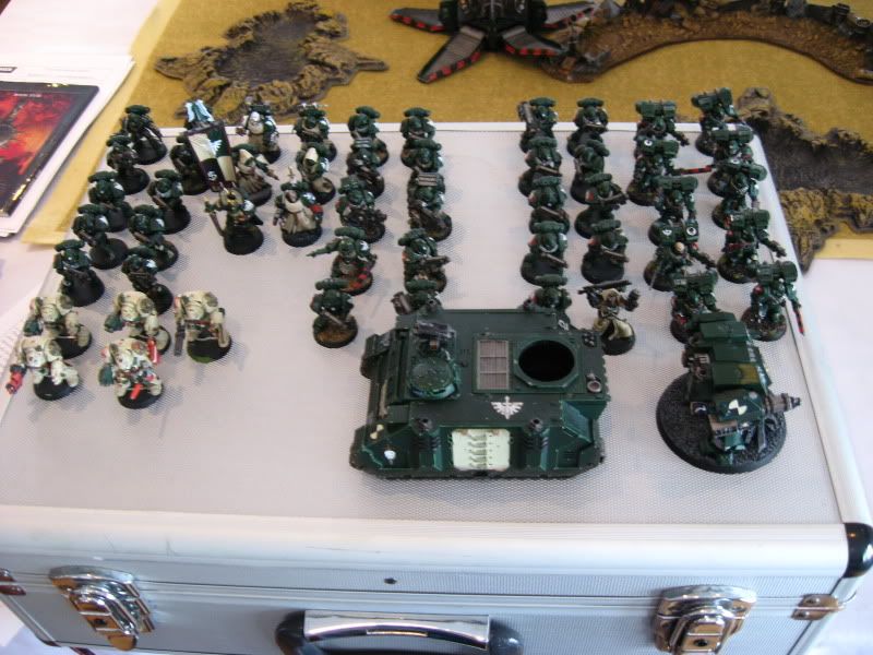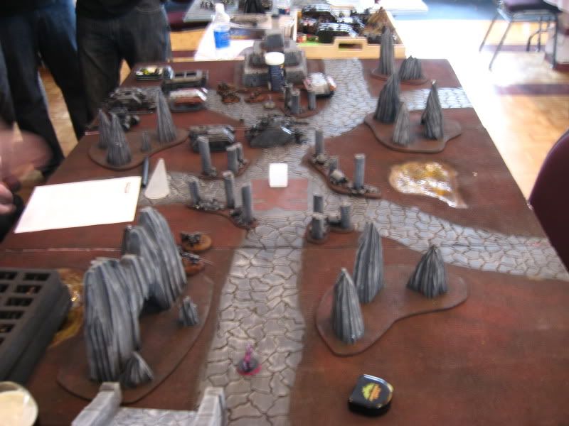 I once again got the chance to stretch my tournament muscles, this time in a 1850 point tourny. Place was real nice, about an hours and a half drive to get to, nice tables and a bar service.