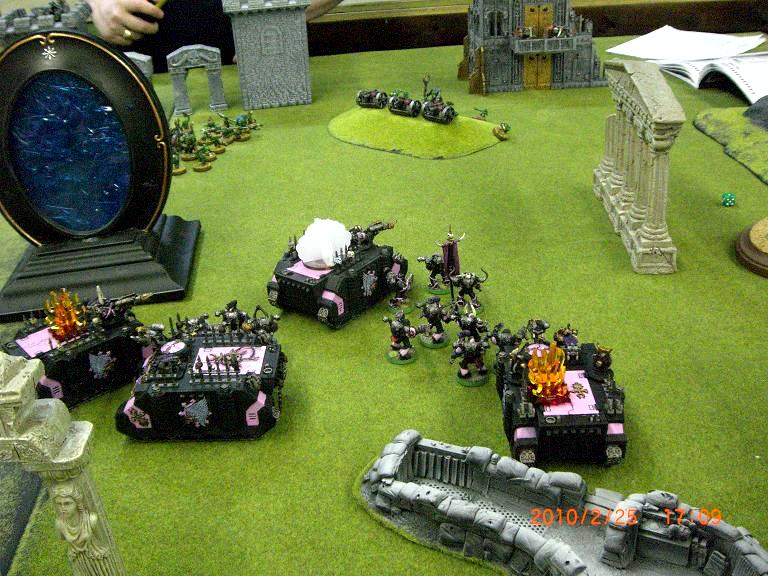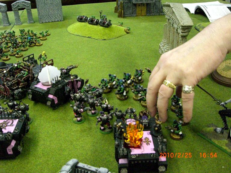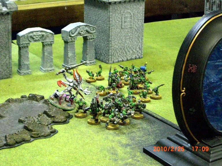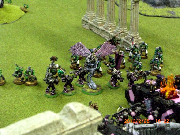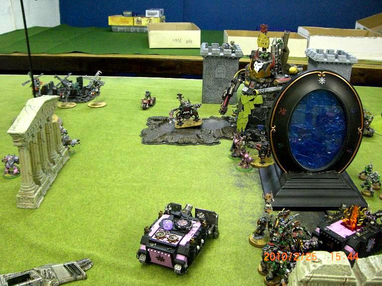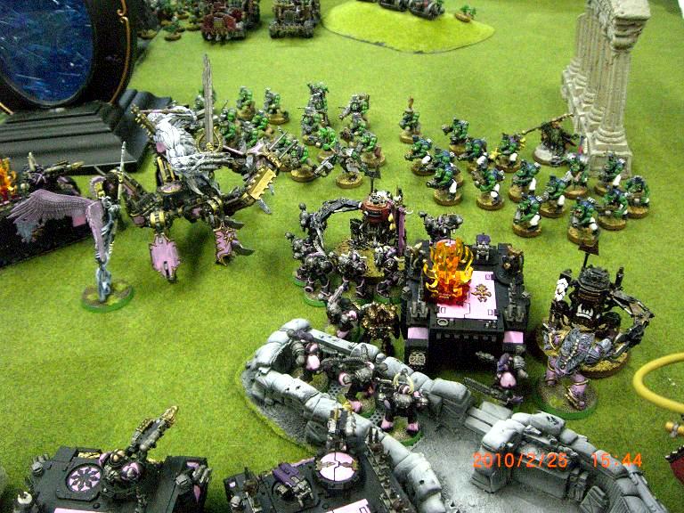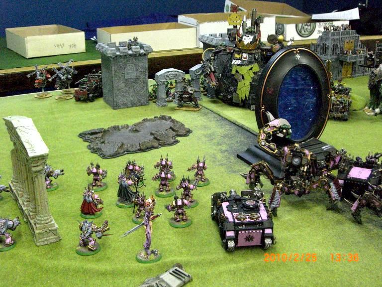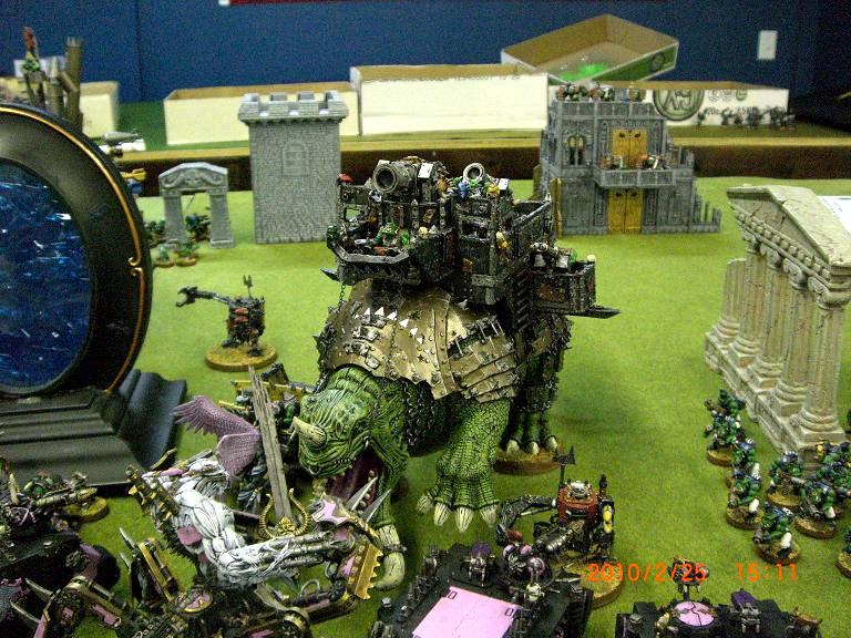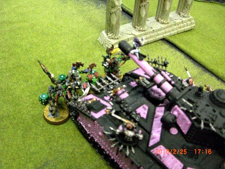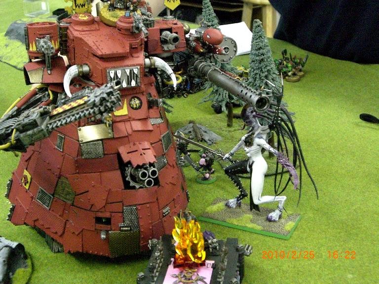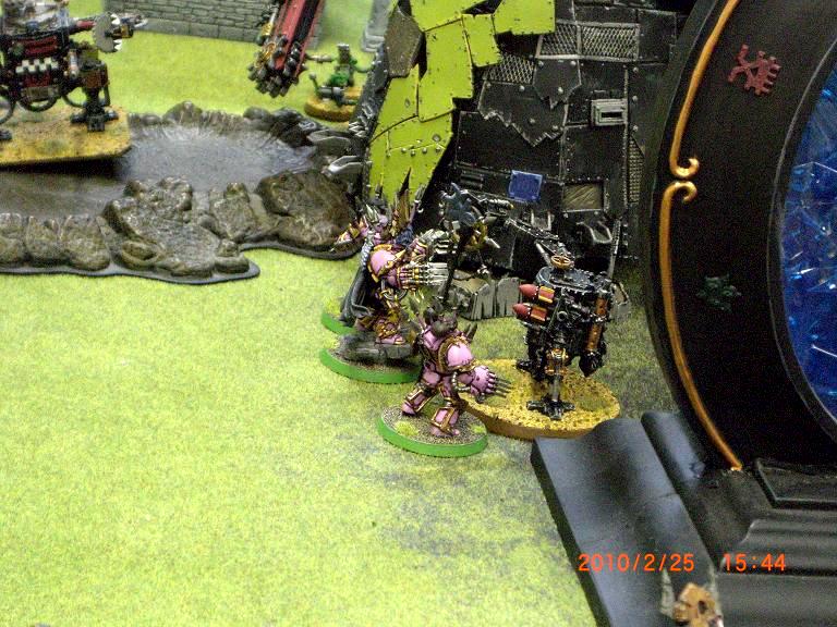 Big sister Zarakynel tears into reality from the body of a noisemarine aspiring champion that was praying to Slaanesh for some kind of method of dealing with the stompa in front of him.....He got his wish! She tore into the Stompa, tying it up in combat into the ork turn, where she finally brought it down.