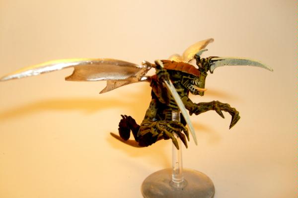 I might be wrong but looks like you've at least got bubonic brown ( or equivalent ) on the main body. Nice shrike conversion indeed. Make the paint on the wings give it a membranous look to it. Also I personally would think it would look better with the legs being replaced with slightly more vestigial ones. Like the mid limbs hormgaunts have.