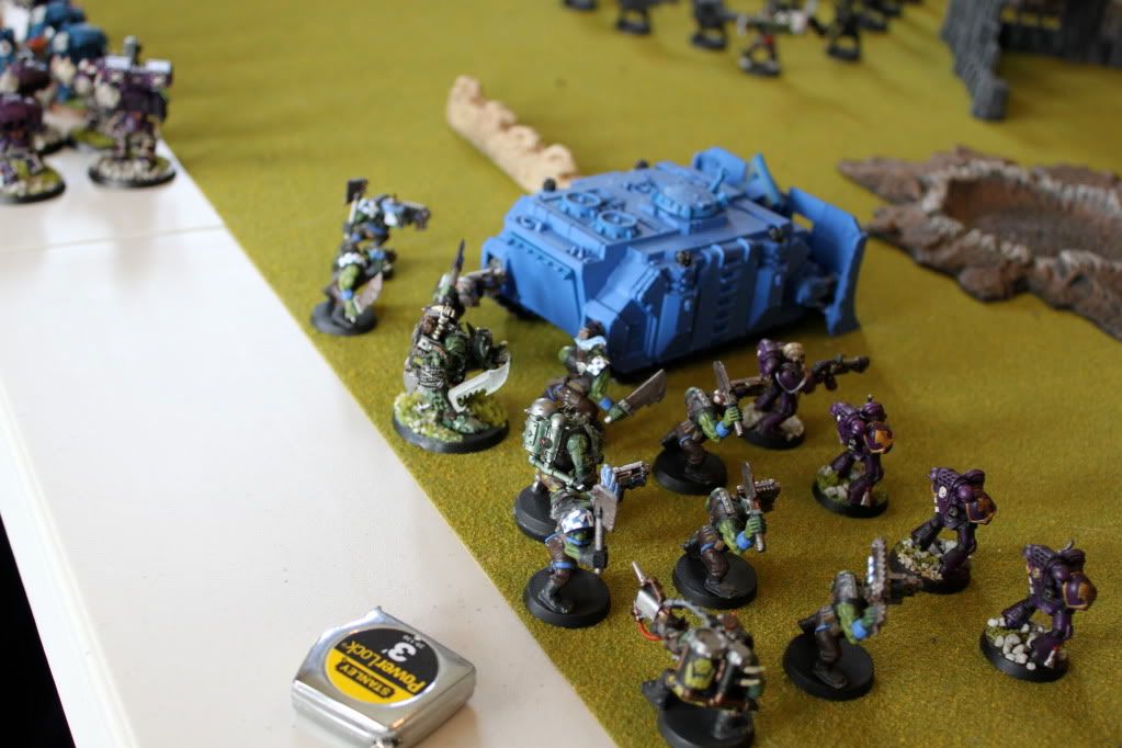 HQ flees and joins the Termie squad. At this point, the only objective holders that he has is a sole Scout with a heavy bolter.