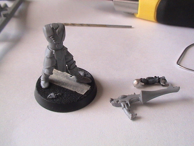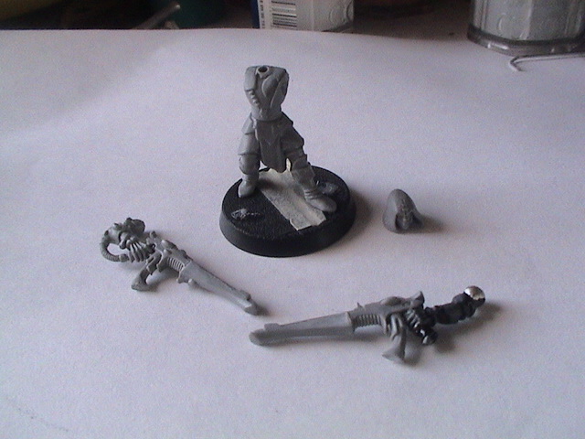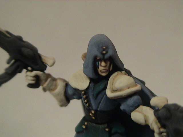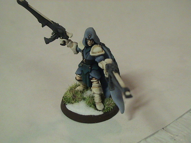 Update: I finished painting the skin and all the Shadow Grey. I started with a base coat of pure Shadow Grey and then slightly blended up to the final highlight of about a 2:1 mix of Shadow Grey and Spacewolves Grey