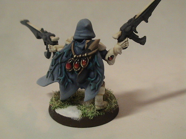 After playing through a couple of games with my Exodites, I decided that it would be more beneficial to run a Dire Avenger Exarch with Avenger Catapults. I currently run an Exarch with a shimmershield and power weapon, but it doesn't really fit with the way I run them. This is a pretty simple conversion but I love the pose. I will be adding more pics of the painting as well.