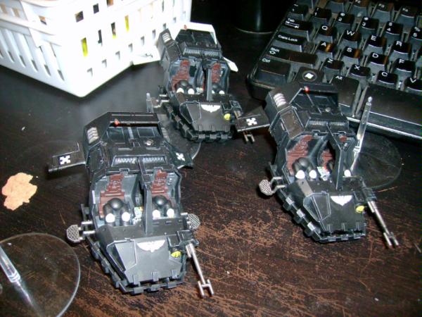 Battle taxis, I really like them with the Tac squad arrows painted on top, they really bring the room together  'nuff said