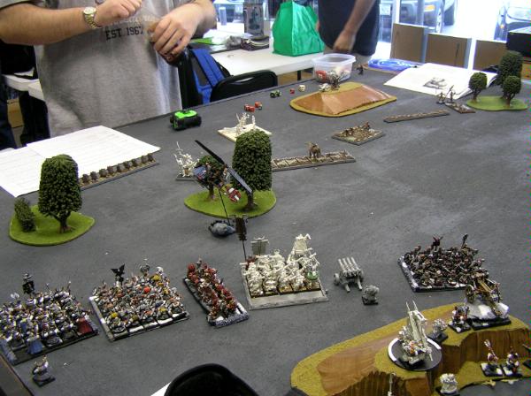 Post game: I missed a massacre by getting the warrior block caught, but otherwise everything pretty much went my way. I need to think a little more about how to use the gyro in an environment with that many shots. Toughness 5 is nice, but enough dice will get through to it.