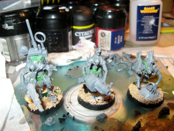 Nice how are you doing the heads? Is it GS or a Wood Elf Head for the Trophy Rack a good source are the chaos terminators. Personally I feel the guns could do with being cleaner or more metal looking but thats just me.