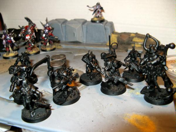 Ultimately though, the loyalists shall be put aside for the time being as to when I feel more motivation to return to finishing them. Meanwhile I plan to add a half track and a penitent cleric squad (Penal Legion count-as) to my chaotic forces, aswell as finishing off the cultist veterans! In any case, no more updates for a few days (or a week or so) as I head back up to Uni, and I'll leave you with a few pictures of the unfinished chaos forces as they stand. Thanks again for reading!