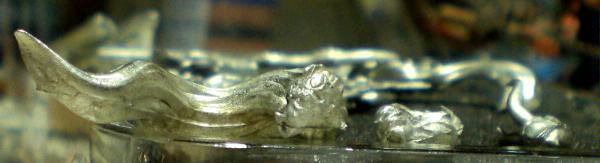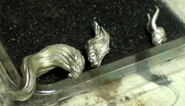 The helmeted head is rather nice though, as the shouting lips inside are visible, a nice touch. The crest (picture a little later) didn't come out so nicely, but honestly I thought the horns AND crest were a little much, so I might just