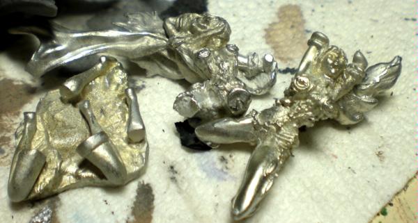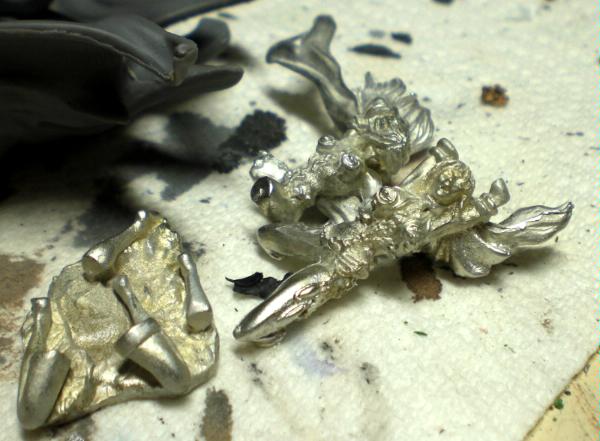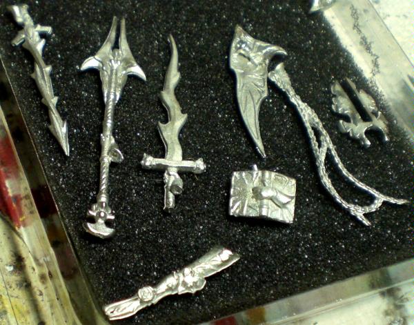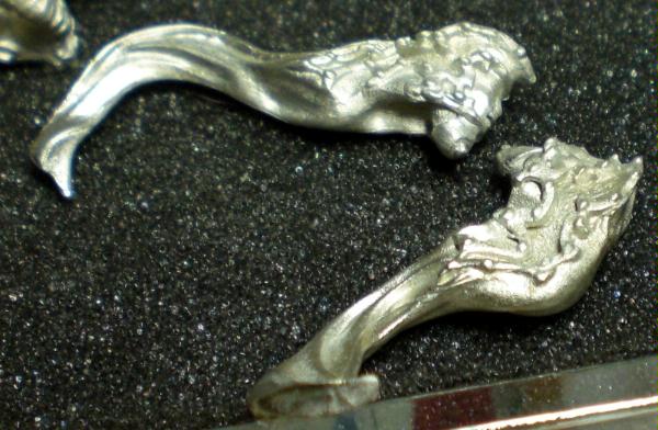 Downside: lots of mold lines, some of which are offset to the point of looking like miscasts. Not unworkable, though that crest and the other leg there at the bottom are going to need a good bit of work to balance that out. Still, after cleaning that up the weapons should look good and enhance a few other models nicely too.