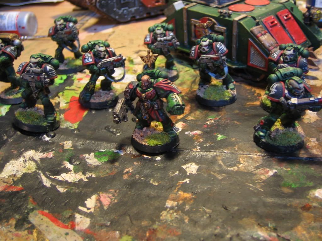 i agree with krusty. i think your painting is very well done i think the colour palette needs to be re thought though. the 3rd company is the only DA company that would feature alot of red ( because their company emblem is red) i do think that you could get away with the red trim but it does look to xmas clown like on the tanks/rhino