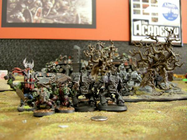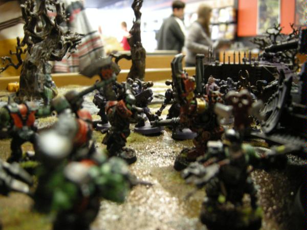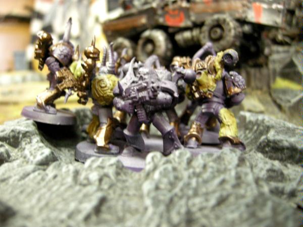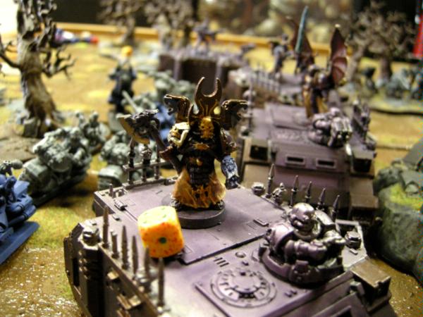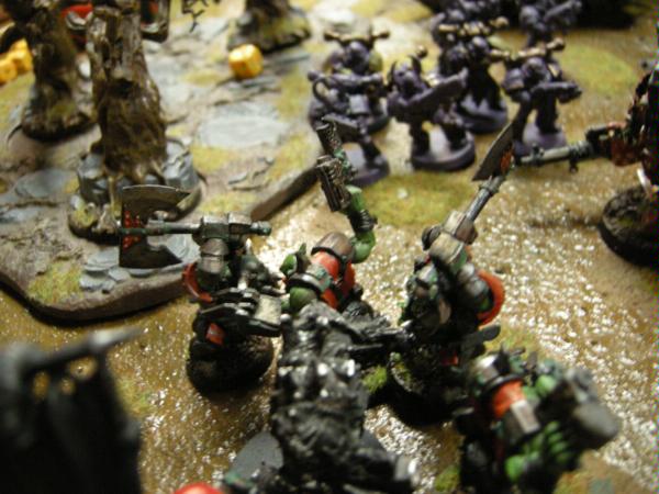 I assaulted a squad of chosen and the obliterators with my trukk squad. I made two 6+ saves from the chosen, and killed them with a mix of boyz and powerklaw attacks. The Oblits killed a boy and I piled into them.