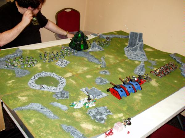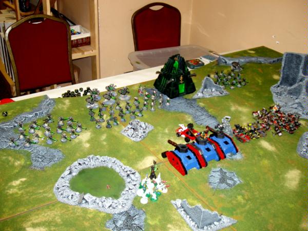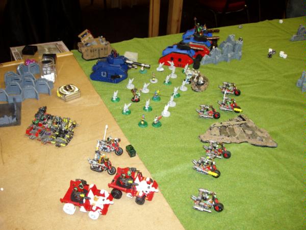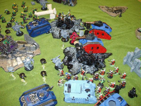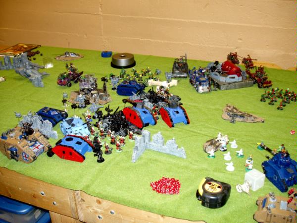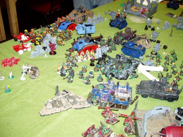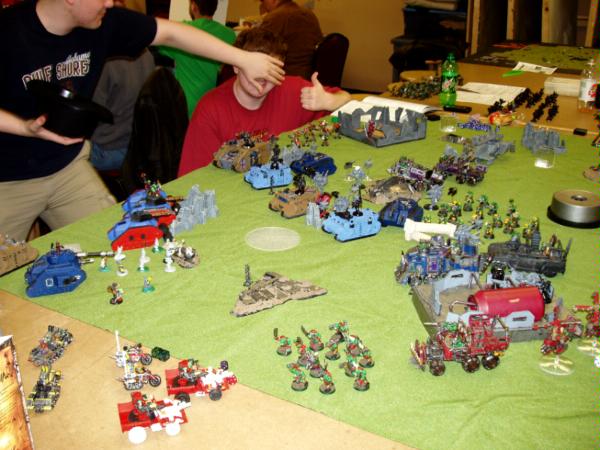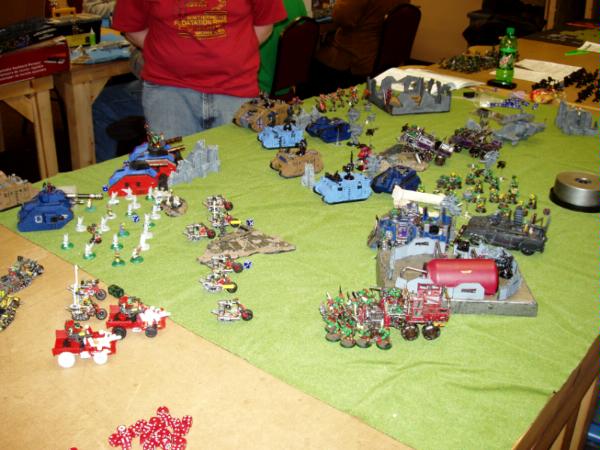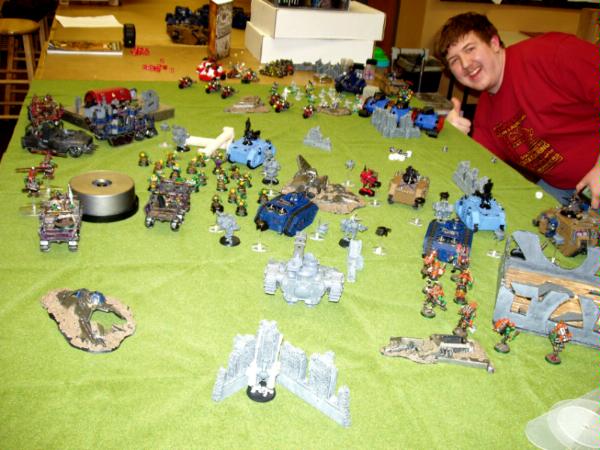 So it was Orks, Space Marines, and Guard vs. Orks, Space Wolves, and Tau(?!?!?)