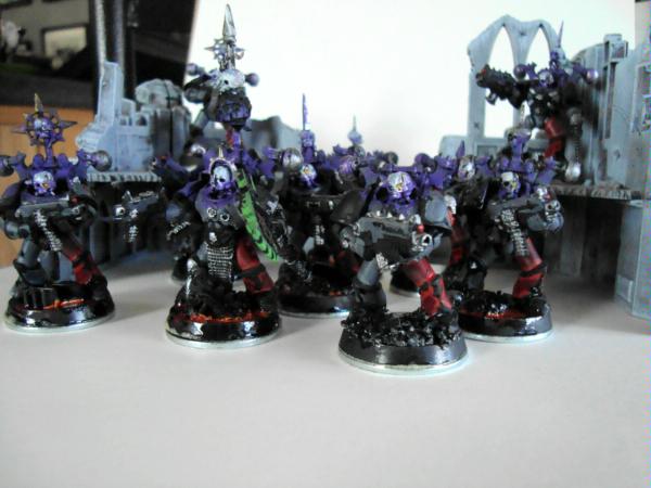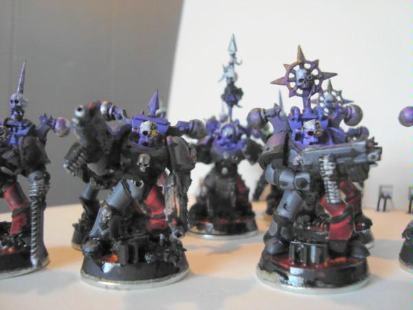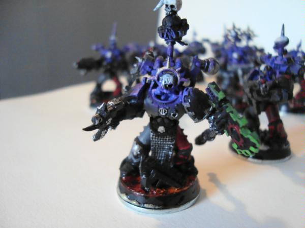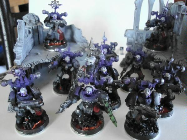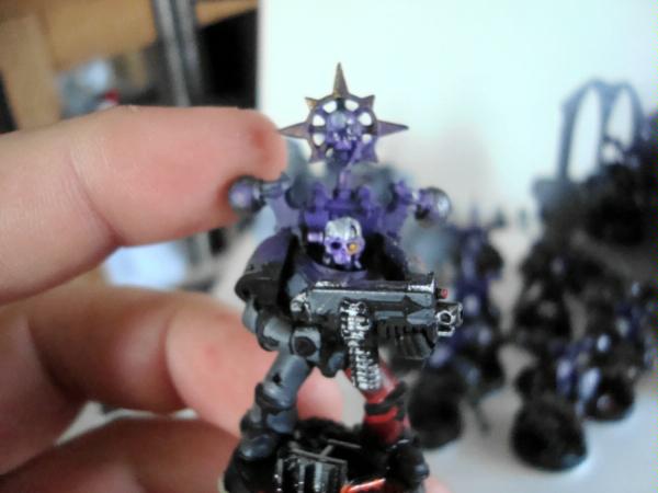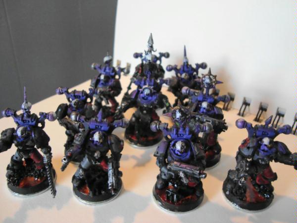 ill try a purple one for comparison. thanks for your input, i really didnt want the blue gold in there lol. Automatically Appended Next Post: if i were starting a whole new force i'd go with the green, but i gotta say i think the purple meshes with the rest of my army better. Added a thousand sons transfer to make it a touch easier to identify for my opponents. still need to mix a brighter purple for some higher light spots on the lighting effect, but i think ill wait to do the whole batch of em at once. Any opinions on purple vs green?