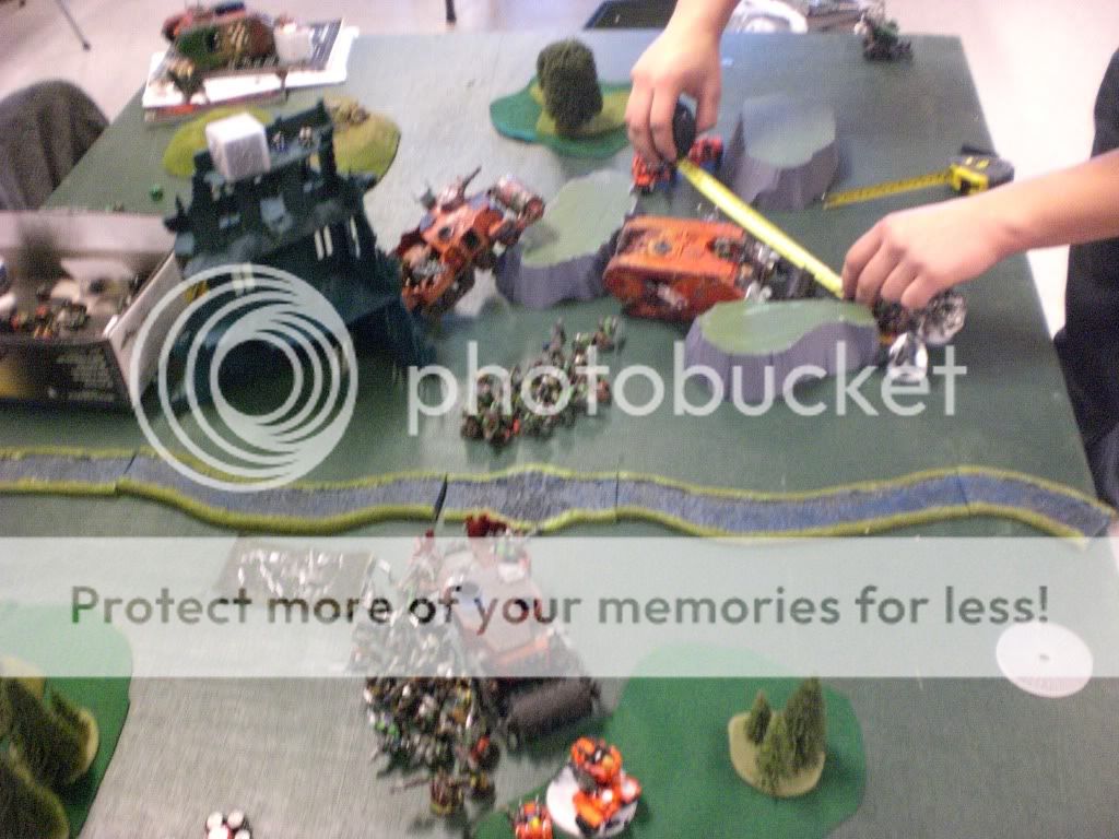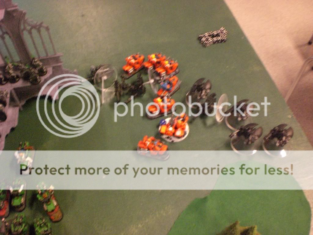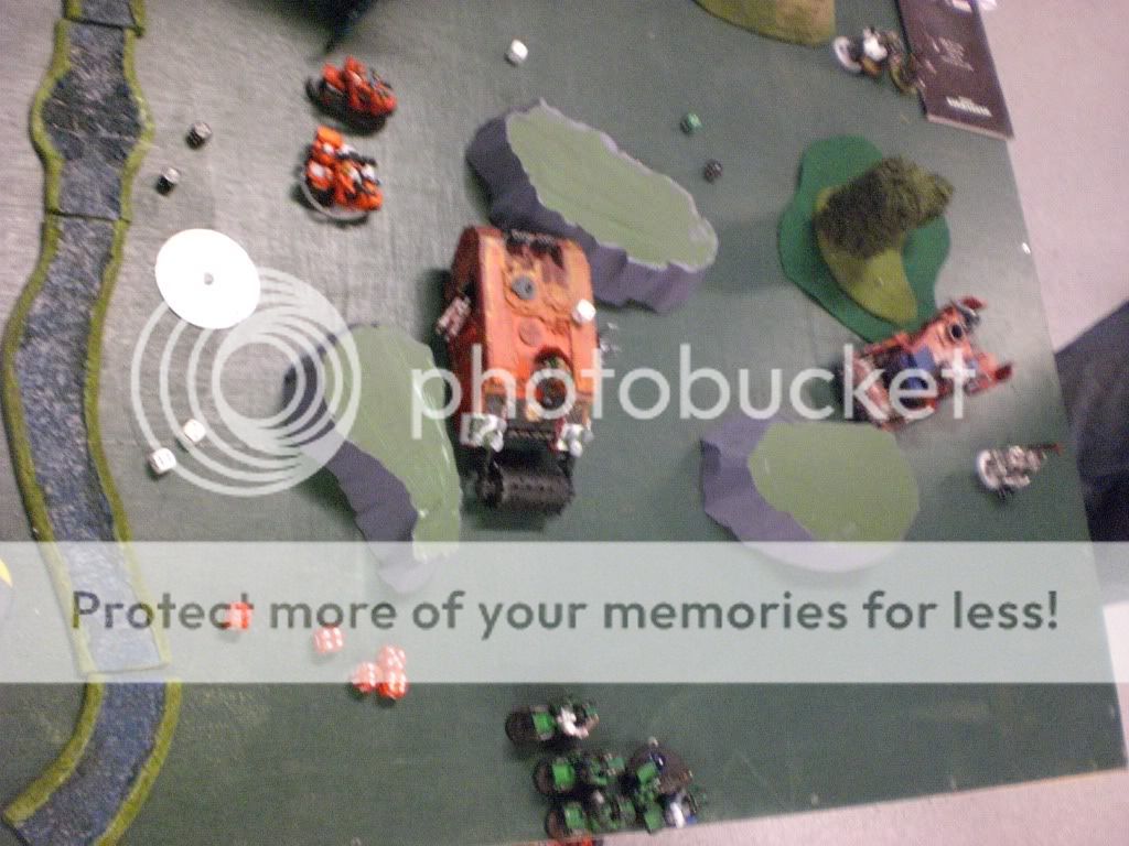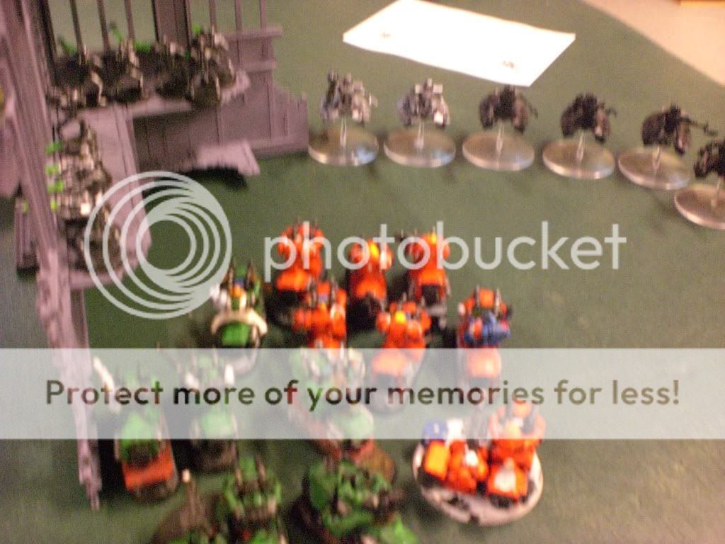 In my turn, my attack bikes blew up one BW, and the left thunderfire then wiped the 20 boys that fell out. The warboss wagon was immobilized.