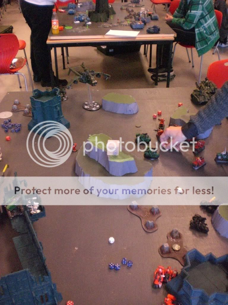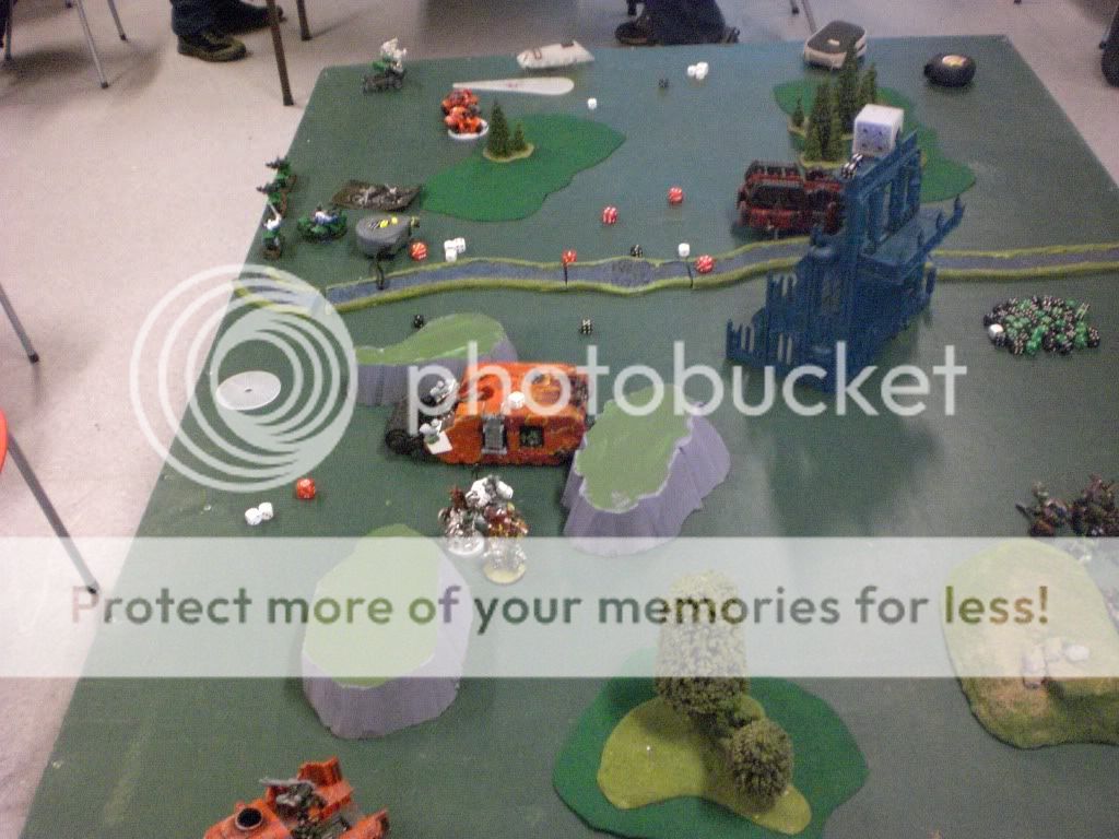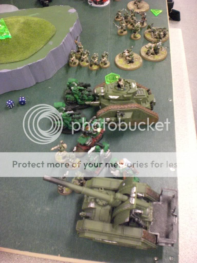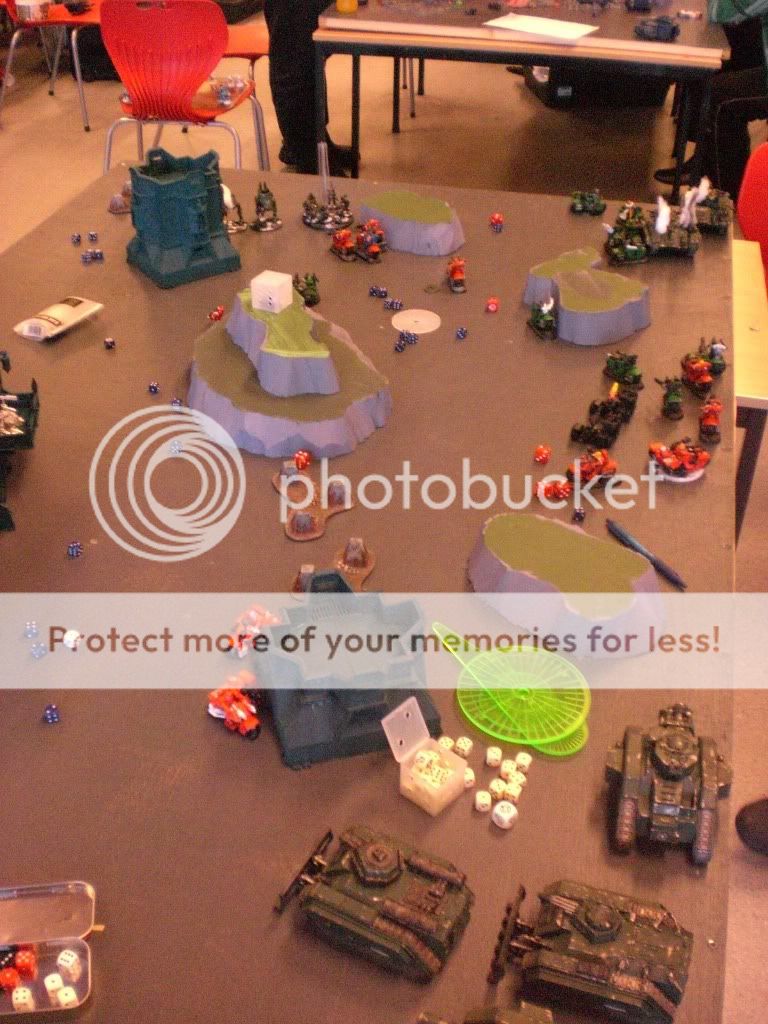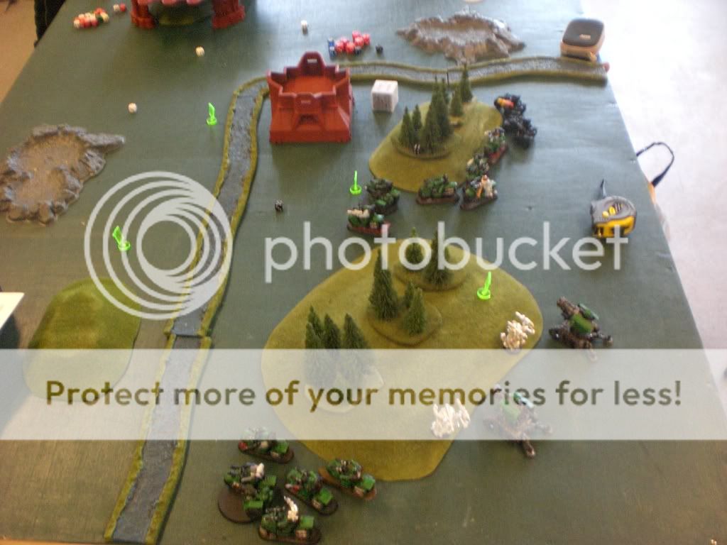 In my turn, my attack bikes blew up one BW, and the left thunderfire then wiped the 20 boys that fell out. The warboss wagon was immobilized.