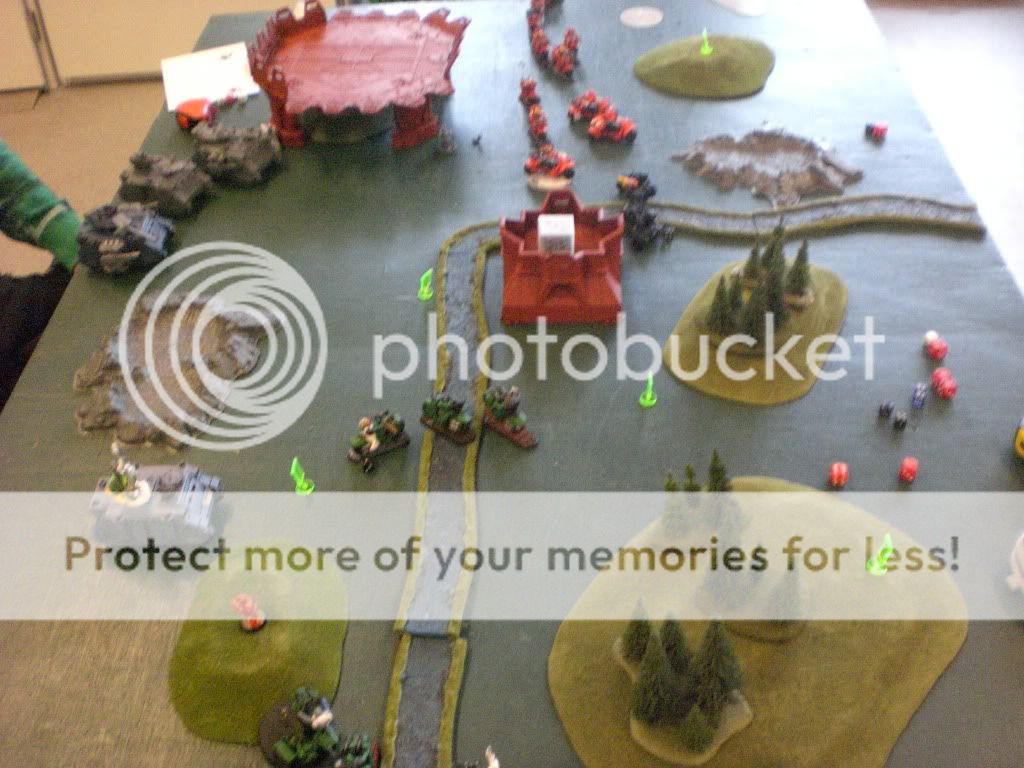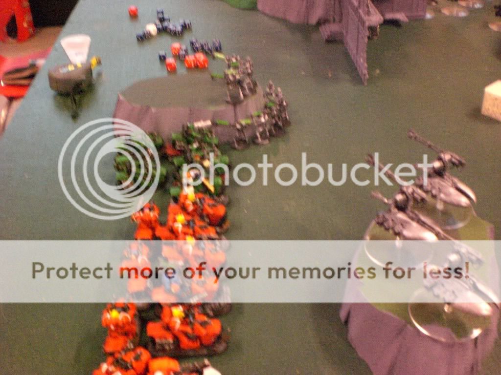 2d6 S10 hits. His meganobs then had a clear charge on the flamers + captain, and wiped them out at the loss of 1-2 meganobs. The rest of his BW's charged forward.